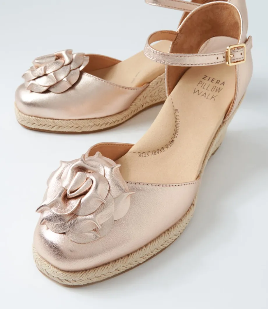 Adira W Pale Rose Gold Leather Wedges<ZIERA Fashion