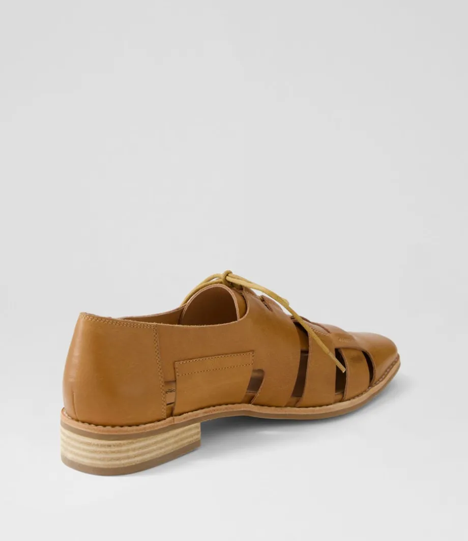 Alisane Tan Leather Lace Up Flats<DJANGO & JULIETTE Cheap