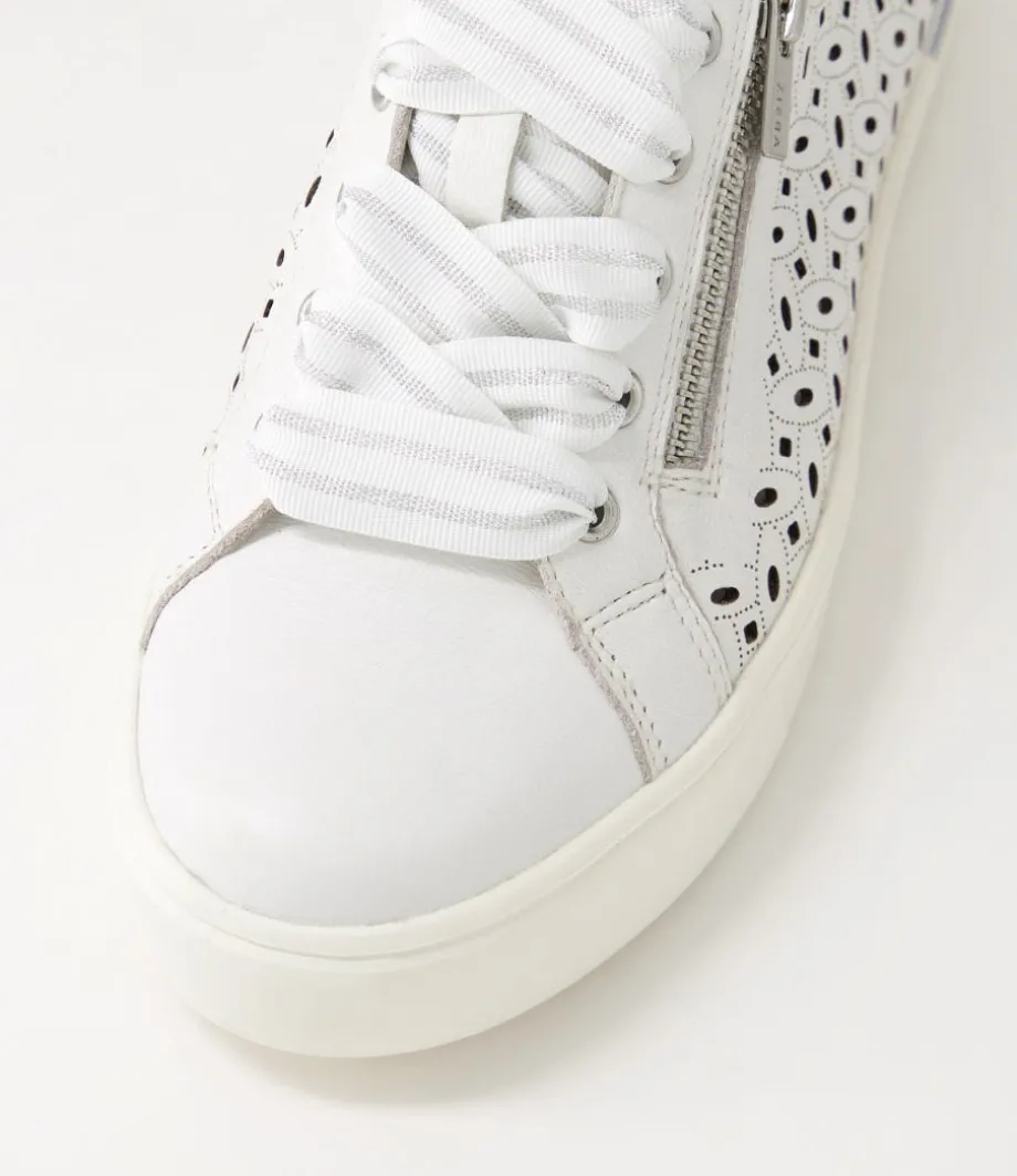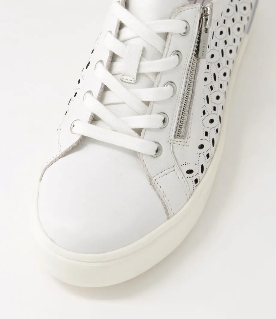 Part Of The Ziera Lite Range Featuring A Lightweight Rubberised Eva Sole, Ayleen Is A Modern Sneaker Crafted From Premium Leather In A Laser Cut Finish With A Lace-Up Front And Edgy Zip Trim. It Includes Two Different Sets Of Laces To Customise Your Look! The Pair Are Fitted With A Removable Comfort Plus Footbed To Promote Optimal Alignment And A Natural Stride, Easily Switched Out For Personalised Orthotics. A Gel Lining Offers Extra Shock-Absorption, While A Tpu Cradle Supports And Cups The Foot From Heel To Arch.This Style Features The Ziera Xf Fit, Allowing The Fit To Be Customised By Adding, Layering Or Removing The Included Forefoot Inserts.