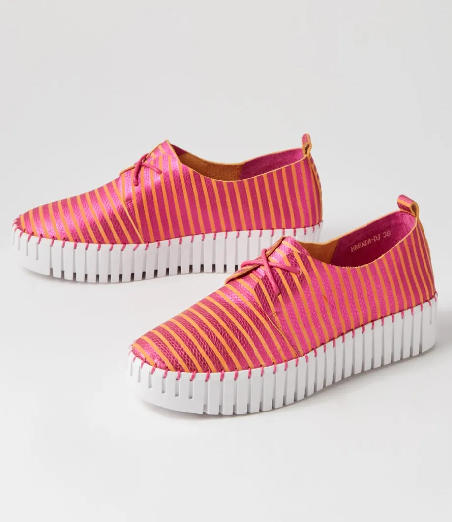 Brenda Fuchsia Orange Stripe Leather Sneakers<DJANGO & JULIETTE New