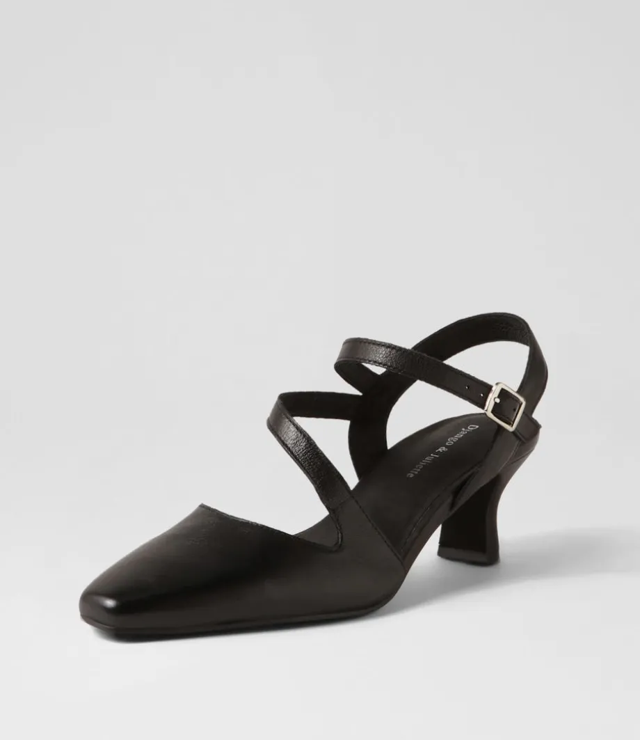 Charissa Black Leather Heels<DJANGO & JULIETTE Best Sale