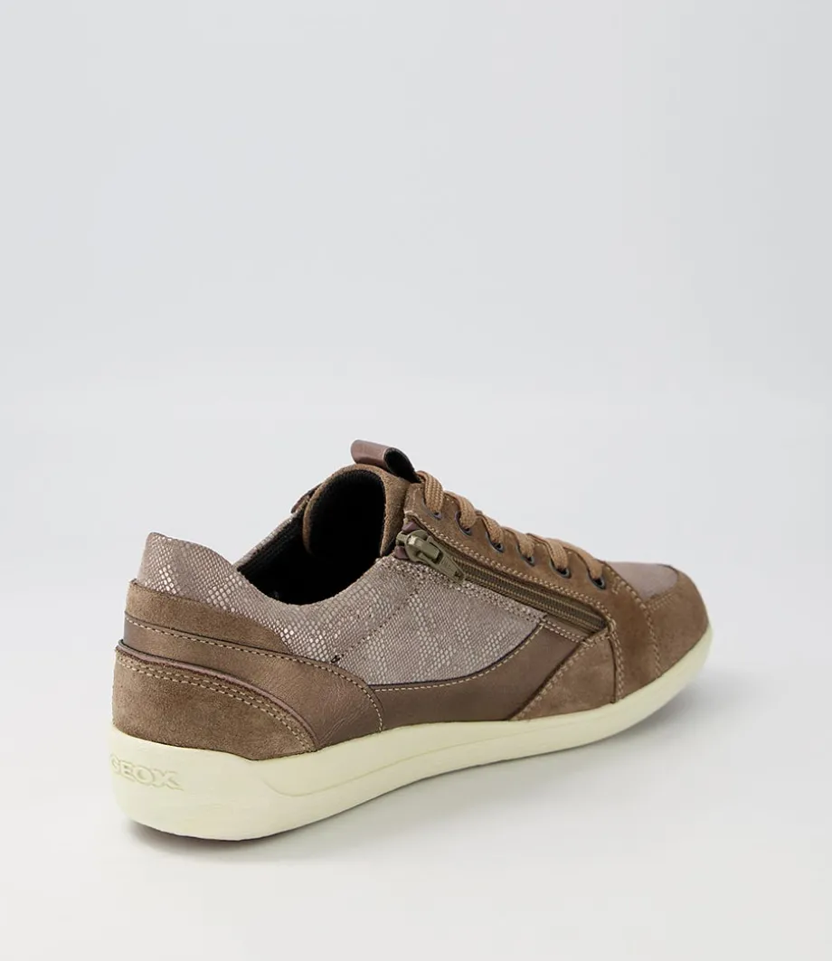 D Myria B Dark Beige Suede Leather Sneakers<GEOX Shop
