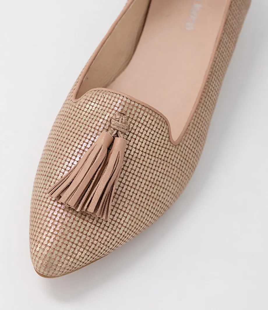 Dustu Rose Gold Cut Leather Loafers<DIANA FERRARI Store