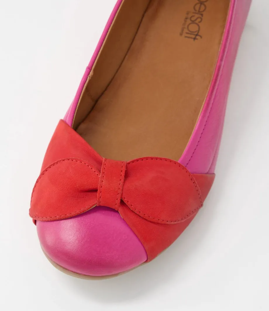 Elandy Fuchsia Red Leather Nubuck Ballet Flats<SUPERSOFT Shop