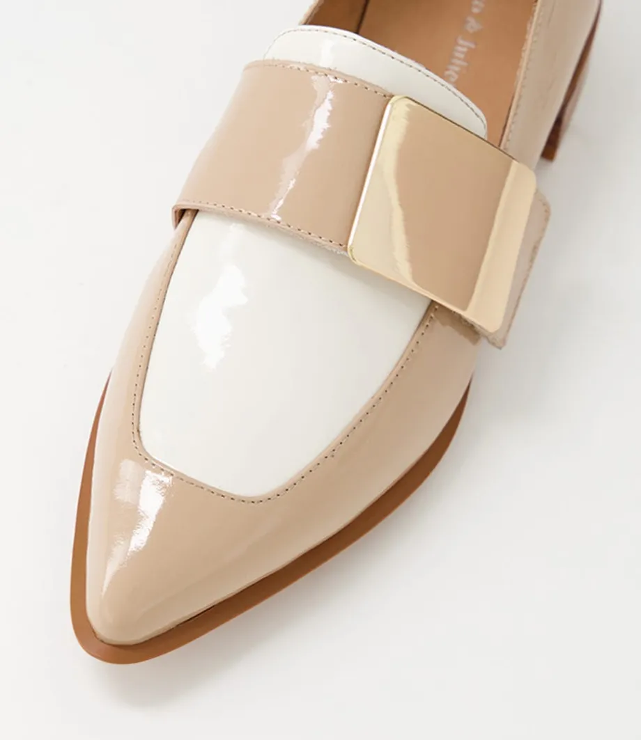 Ering Camel Ivory Gold Patent Leather Loafers<DJANGO & JULIETTE Cheap