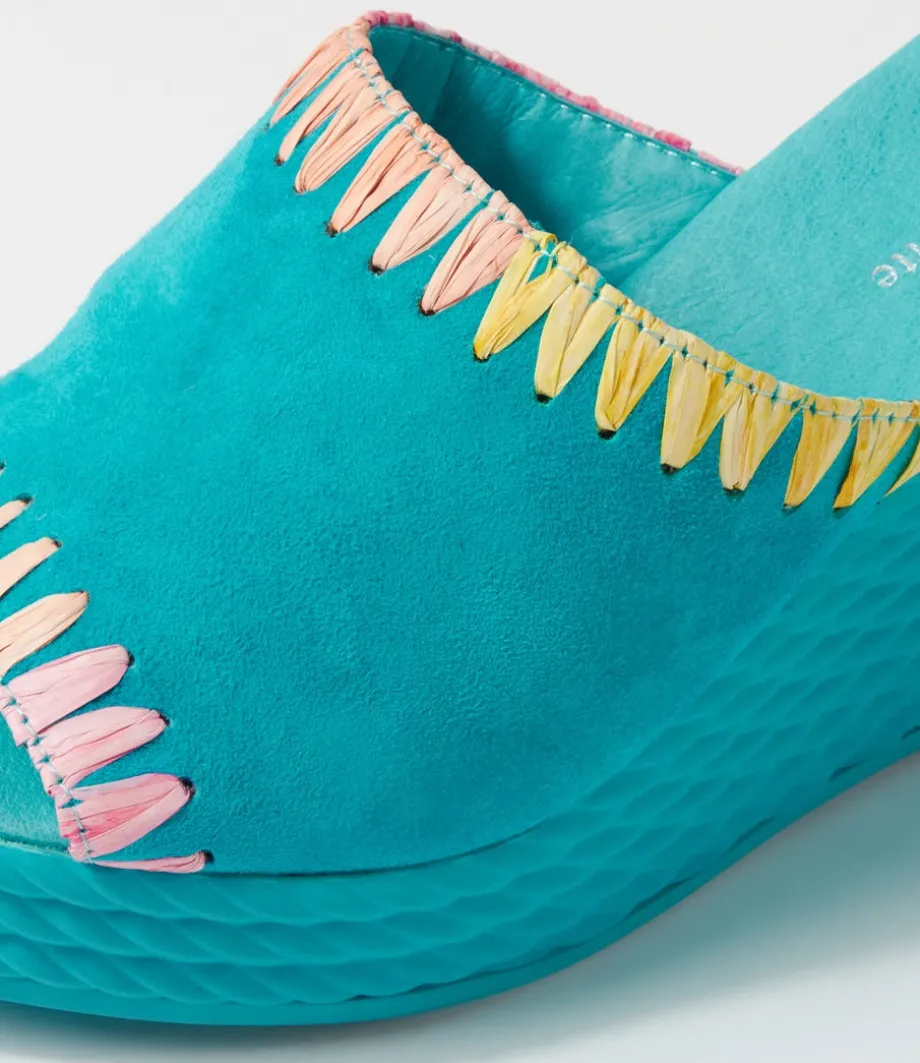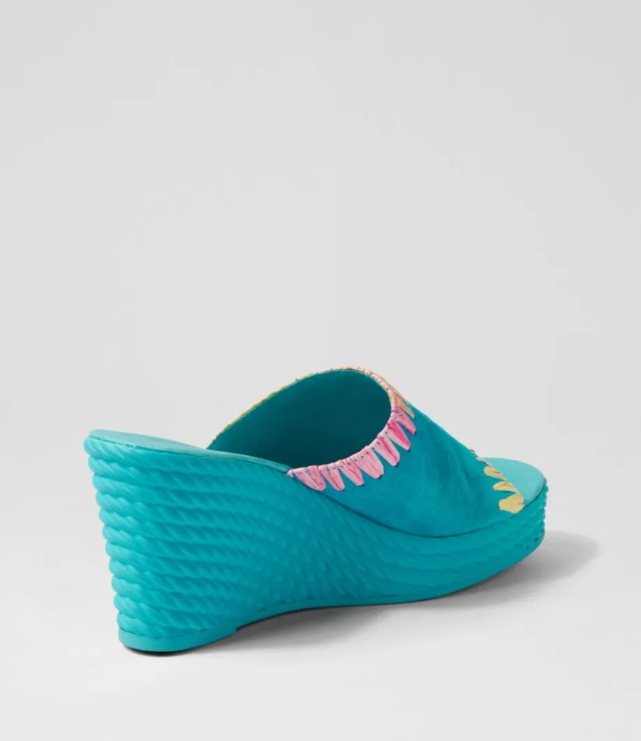 Feel The Sweet Summer Breeze In These Bold Suede Wedges By Django & Juliette. Saturated Colour And An Ombre Raffia Detai…