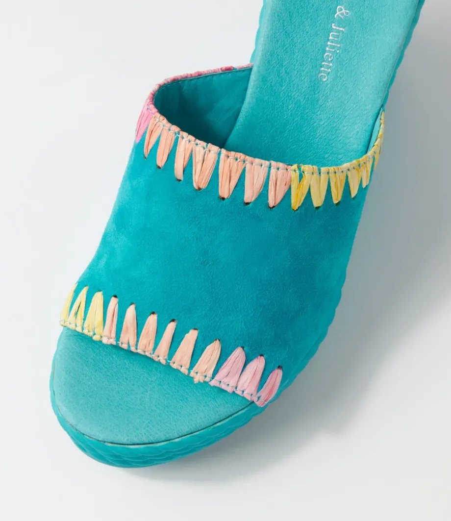 Esmey Aqua Bright Suede Sandals<DJANGO & JULIETTE Cheap