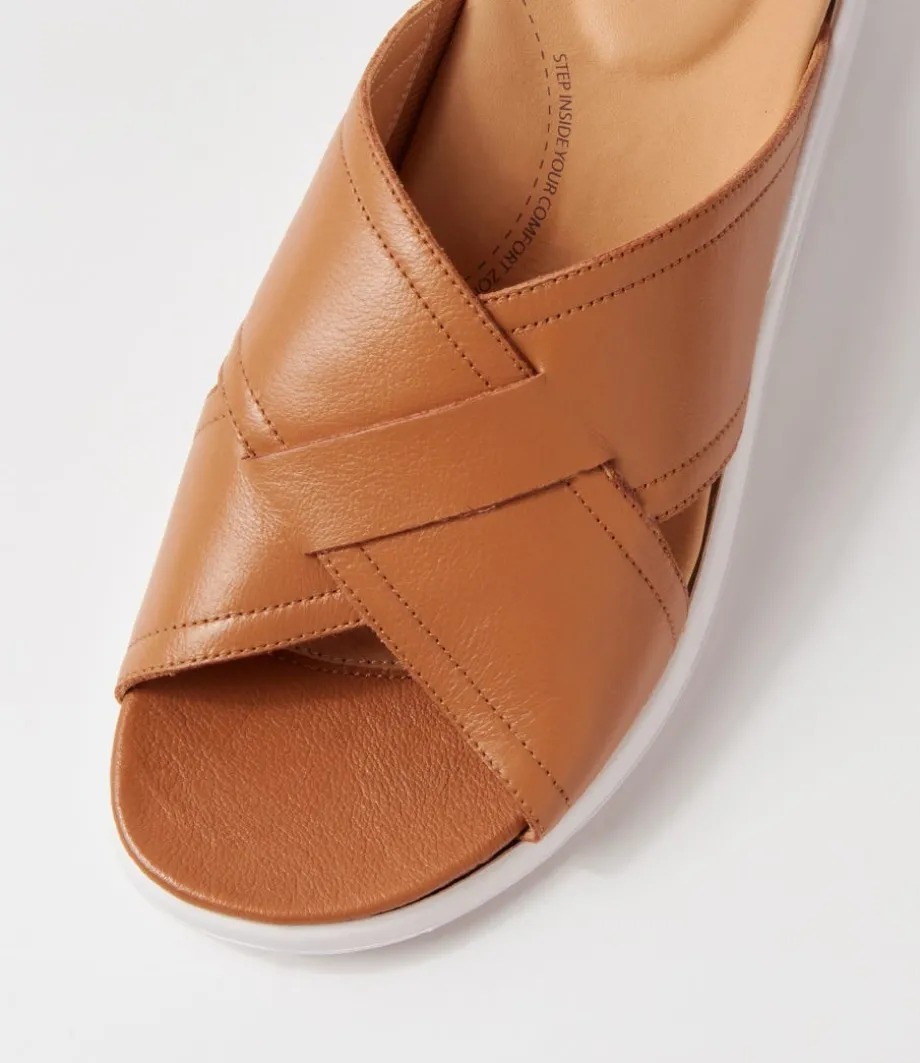 Iyolo W Dark Tan Leather Slides<ZIERA Discount