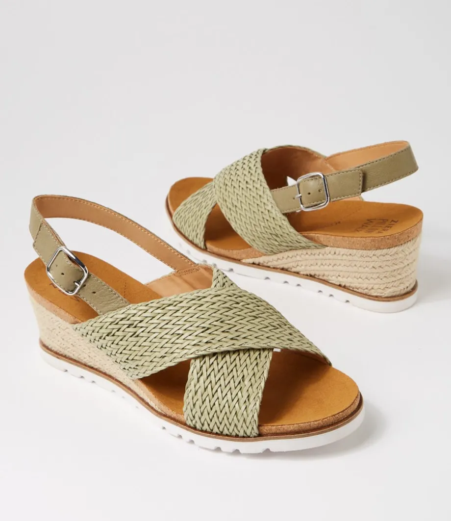 Kaeme W Khaki Weave Leather Sandals<ZIERA Cheap