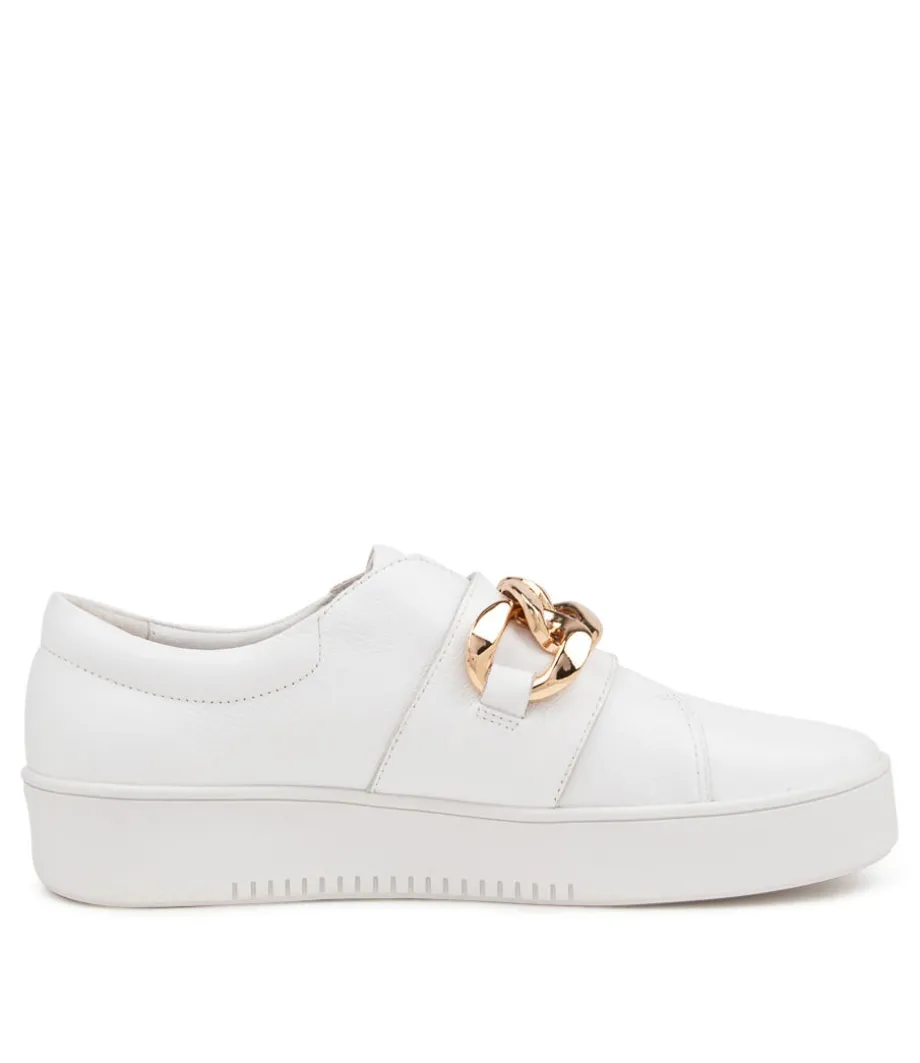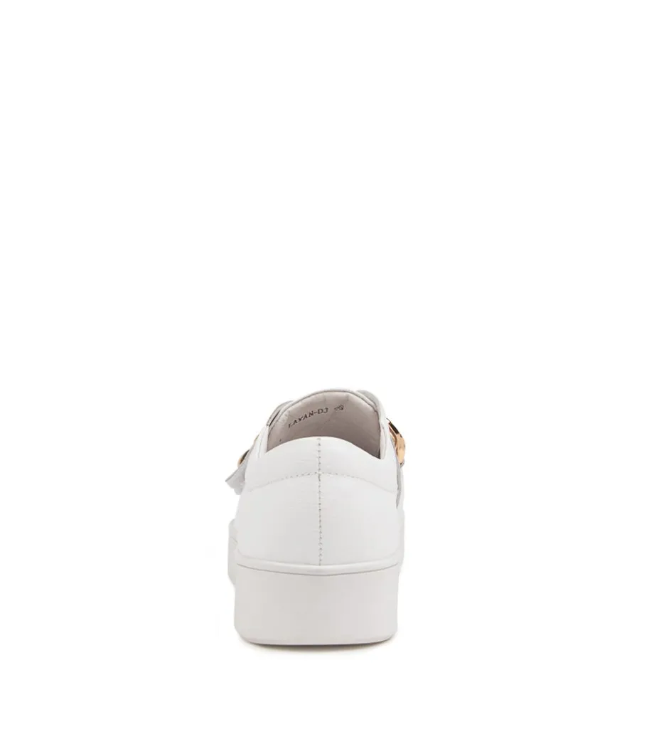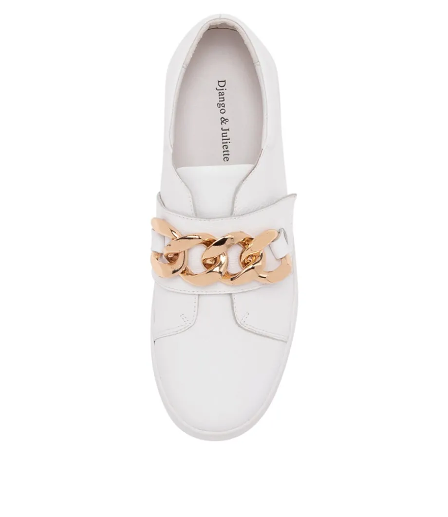 Get Laidback Slip-On Style With Layan By Django & Juliette. These Leather Sneakers Have A Riptape Strap Boldly Embellished With A Chain For Easy-To-Wear Glam Every Day Of The Week.