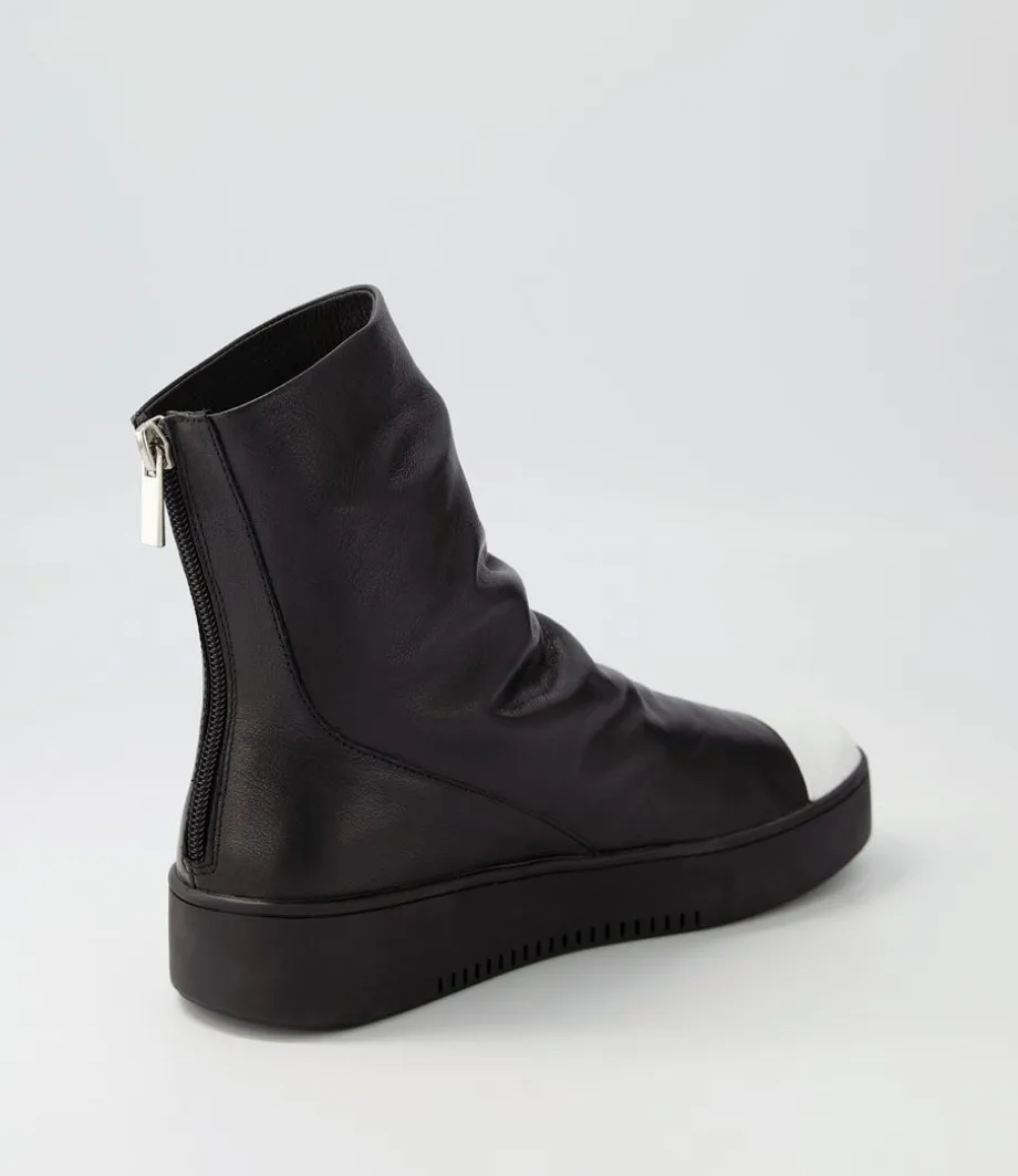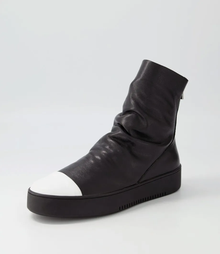 Lonzo White Black Leather Ankle Boots<DJANGO & JULIETTE Store