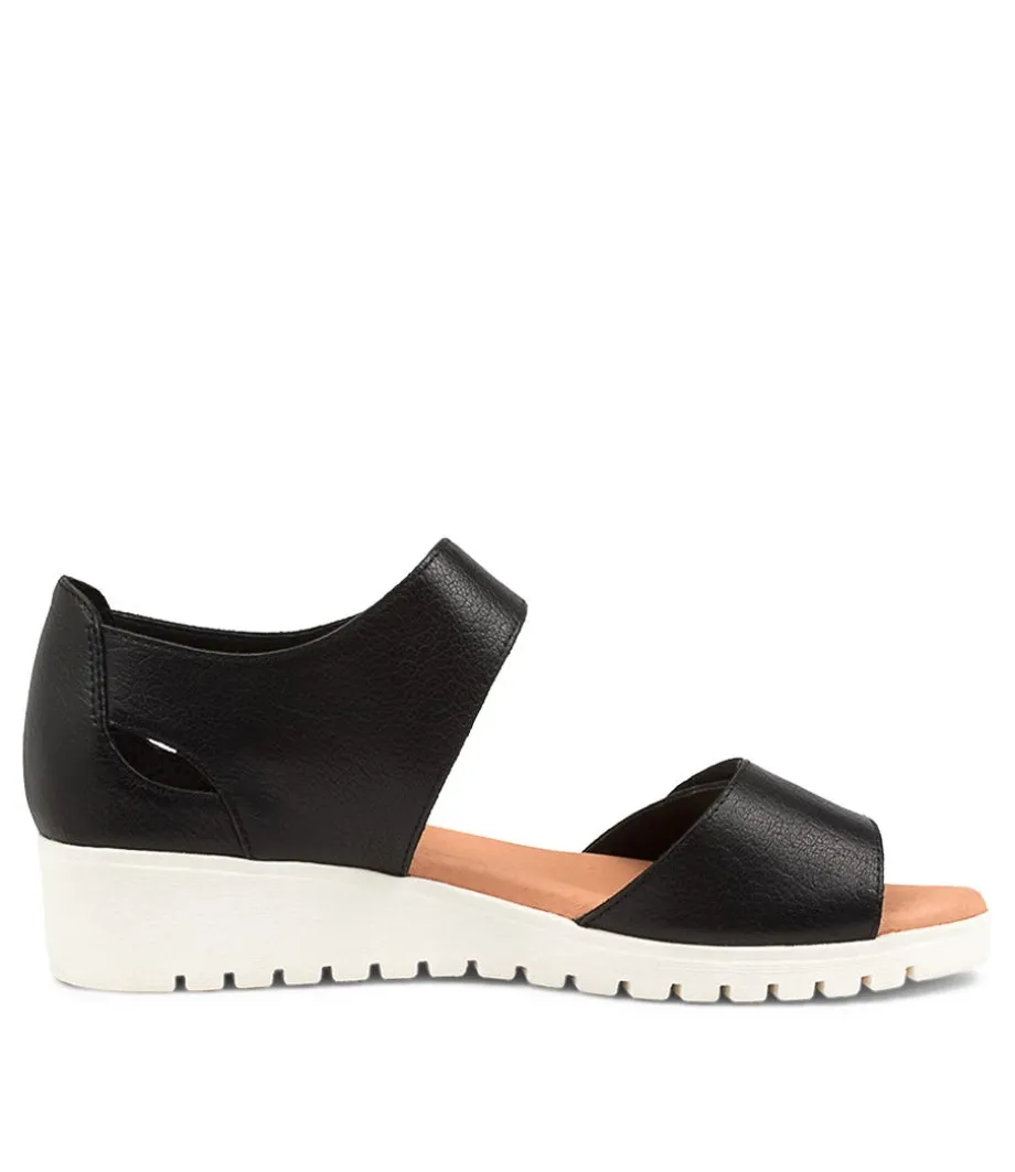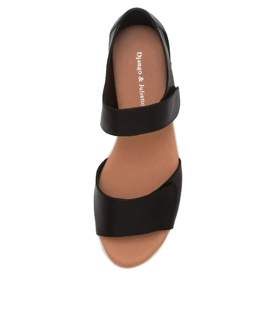 The Casual Monte Sandals By Django & Juliette Rest On A Comfortable Low Wedge And Fasten With Two Riptape Straps For A Fuss-Free And Convenient Fit.