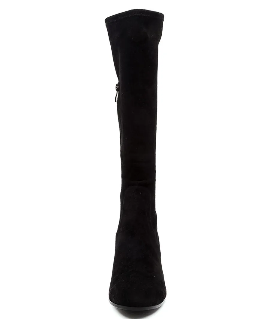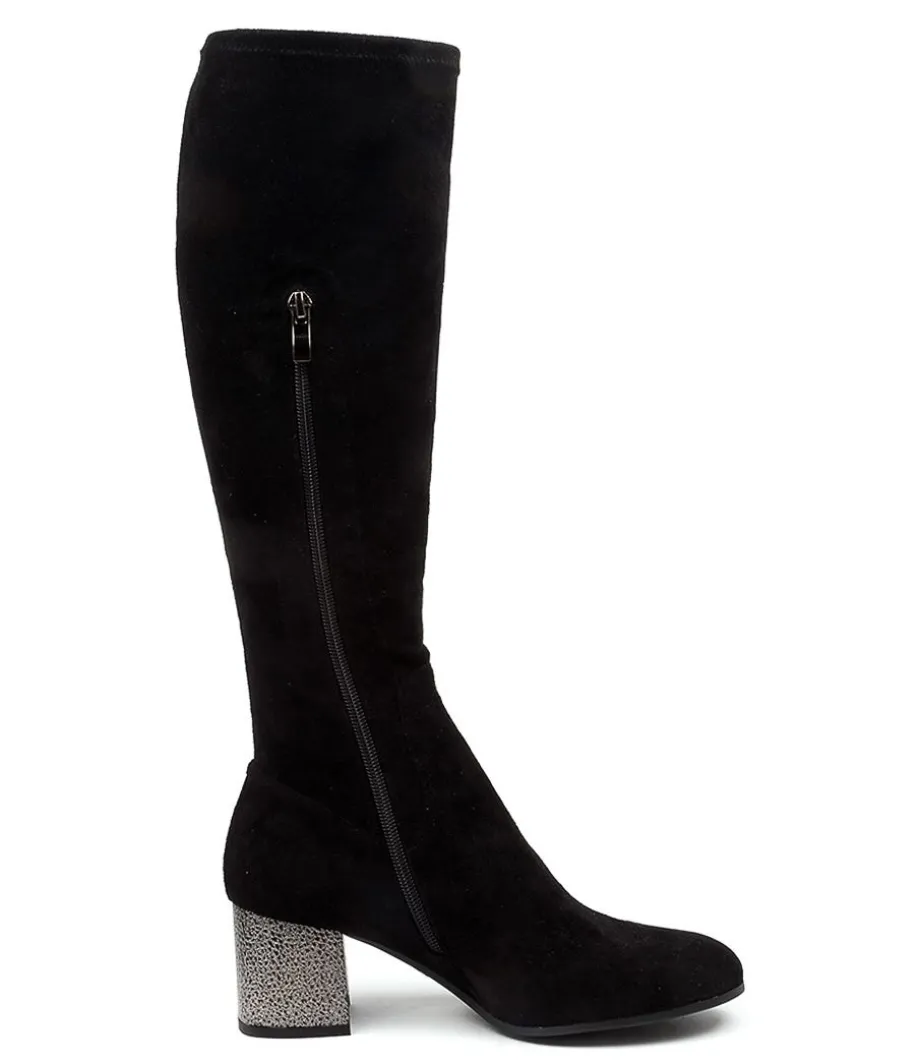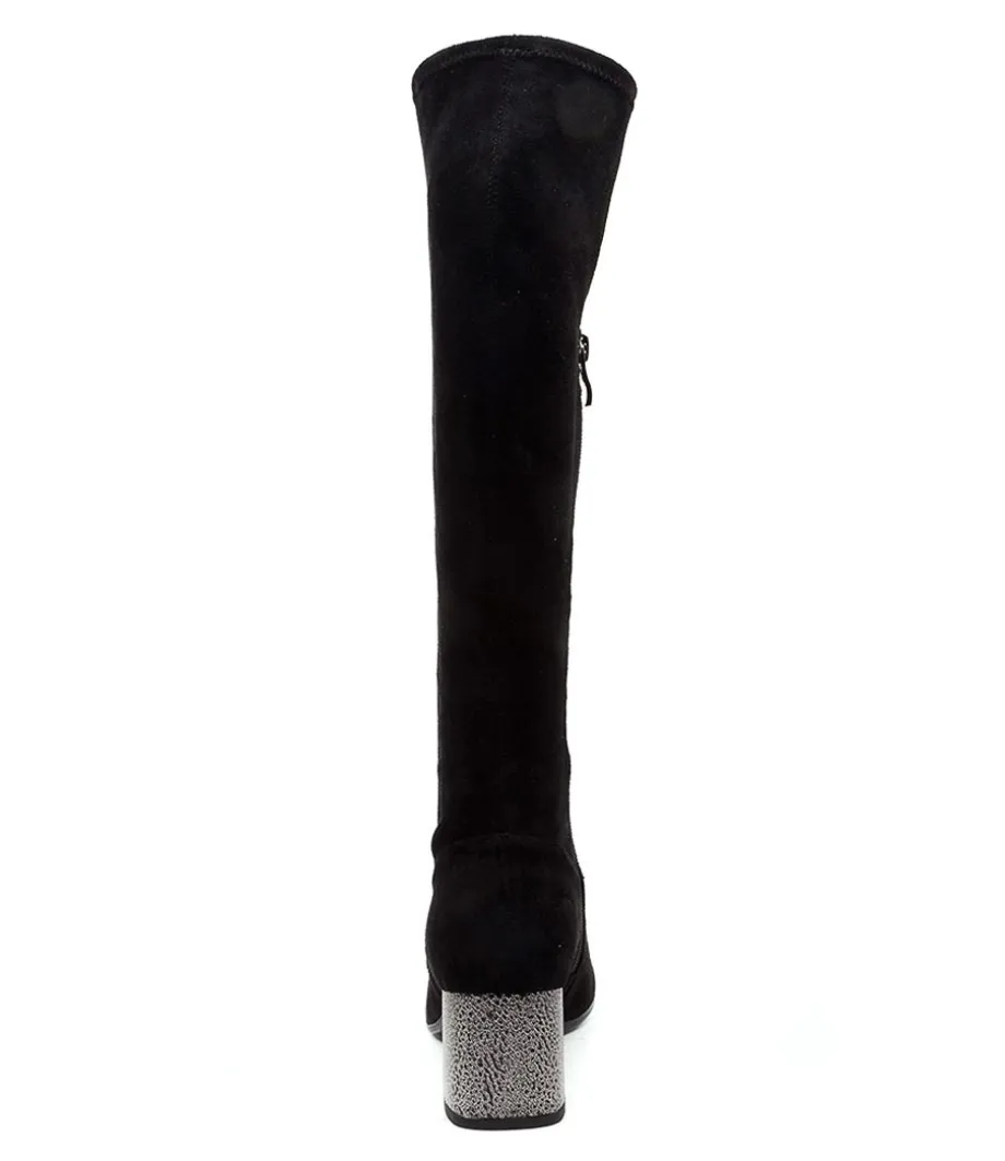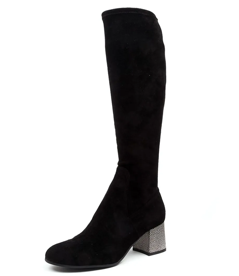 Take It Up A Notch With Nething By Django & Juliette. Resting On A Unique Pebbled Pewter Heel, This Stretch Microsuede Knee Boot Flatters The Leg And Can Be Styled Desk-To-Dinner With An Elegant Blouse And Pencil Skirt Or The Essential Little Black Dress.