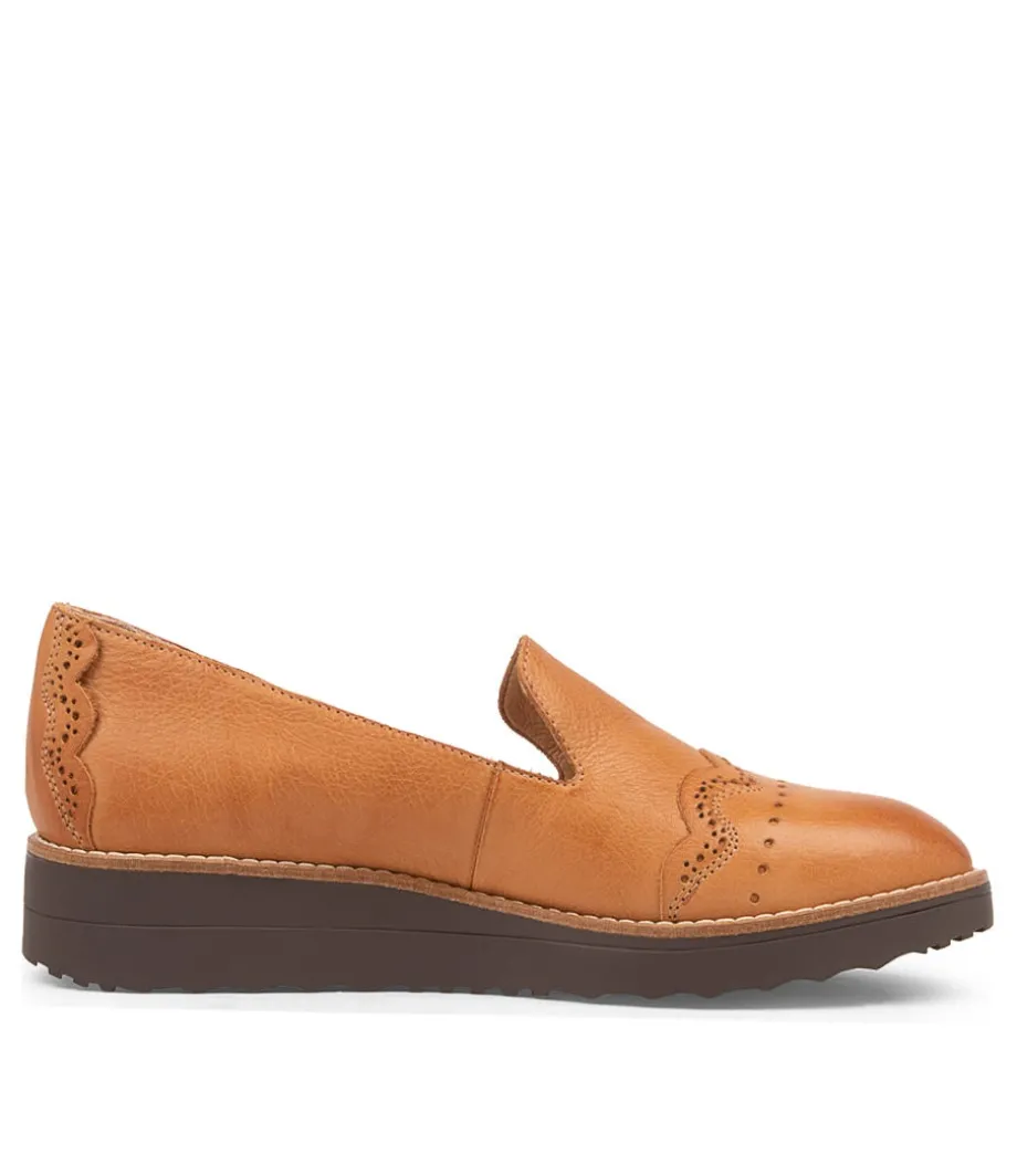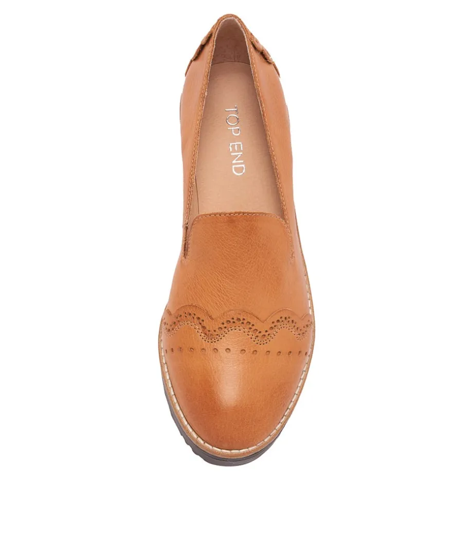 Classic Leather Loafers With A Modern Twist, Orchidy By Top End Has Decorative Broguing Over The Heel And Toe, And Is Elevated By A Low Wedge.