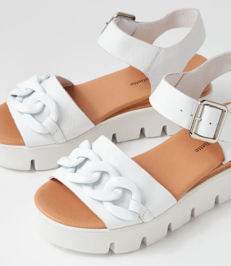 Racassy White Leather Sandals<DJANGO & JULIETTE Clearance