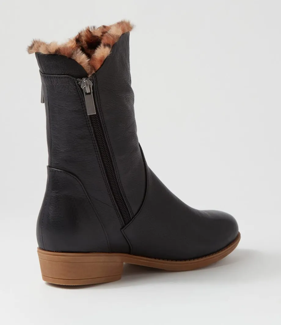 Rudo Black Leopard Fur Tumble Nubuck Calf Boots<DJANGO & JULIETTE Cheap