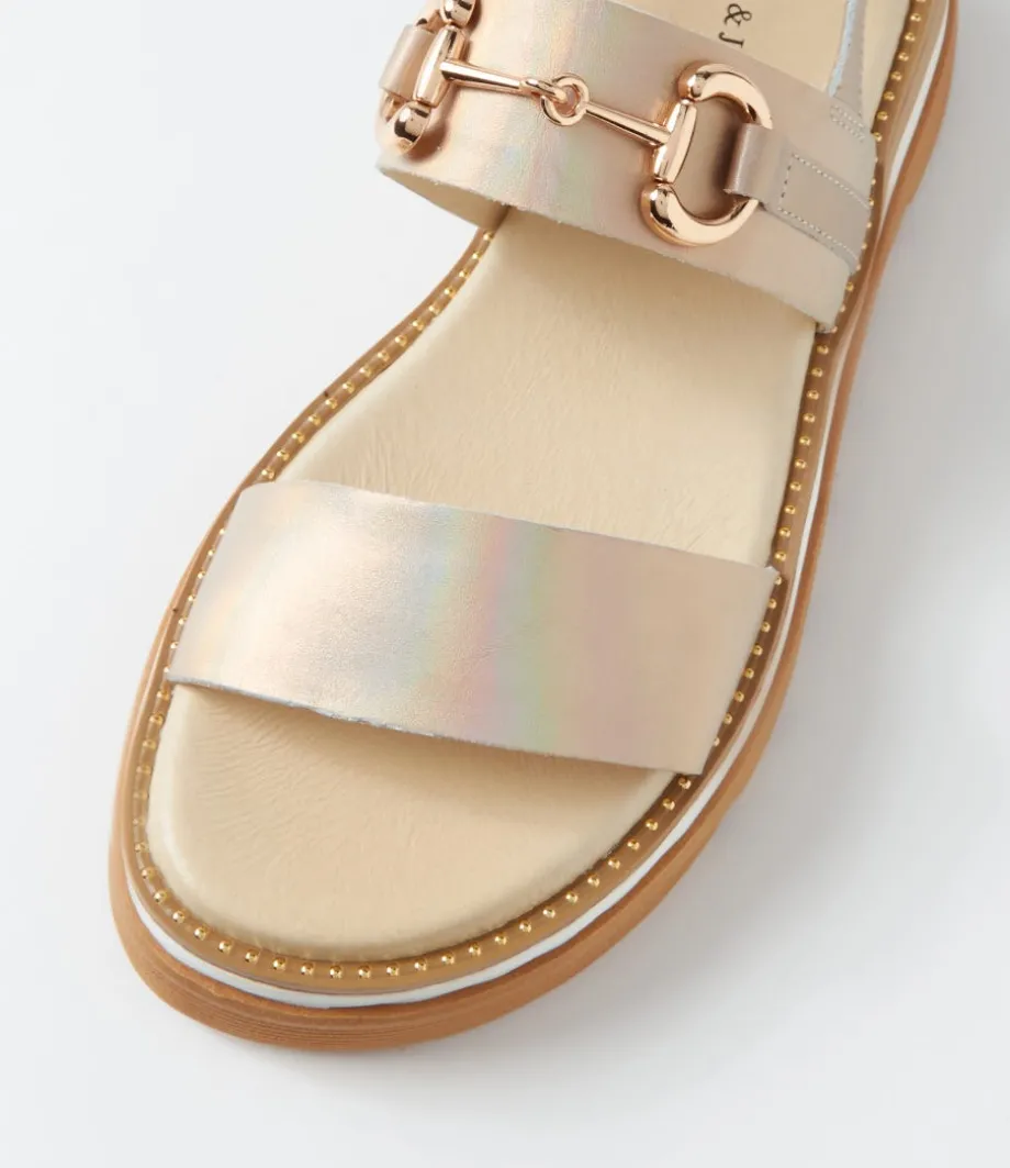 Sabri Gold Petrol Shrunken Leather Sandals<DJANGO & JULIETTE Clearance