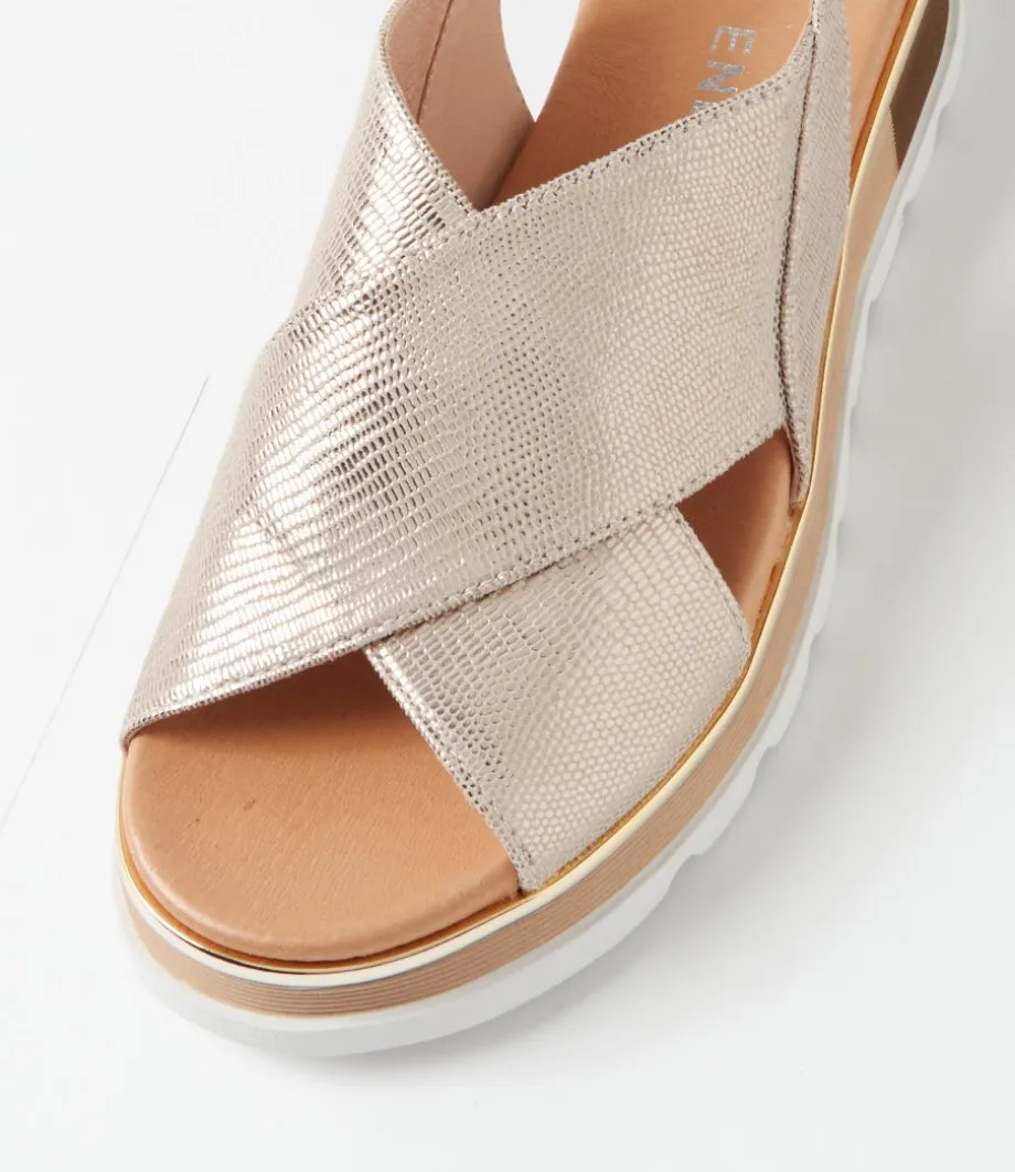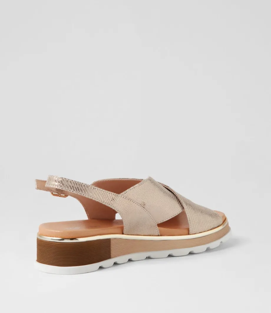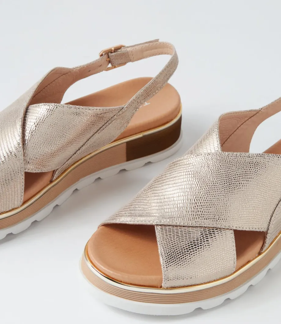 Ulrika Champagne Lizard Leather Sandals<TOP END New