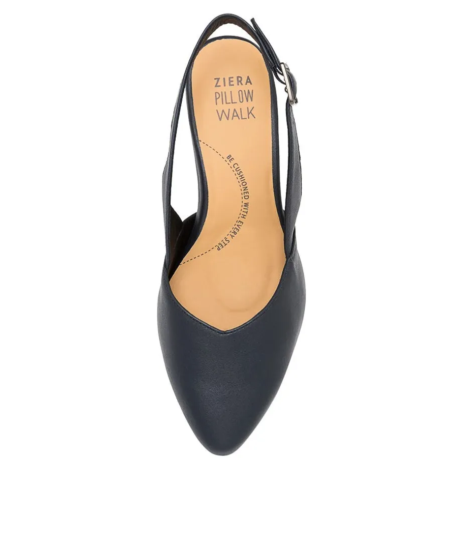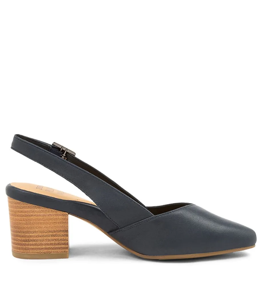 Veera Xw Navy Leather Heels<ZIERA Store
