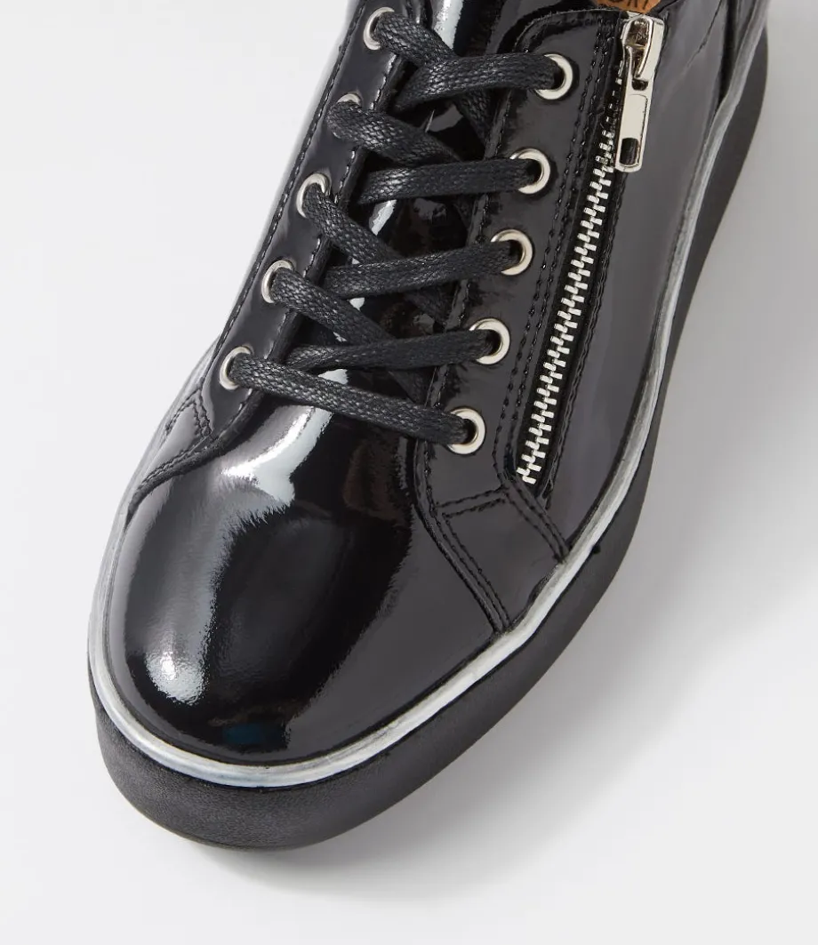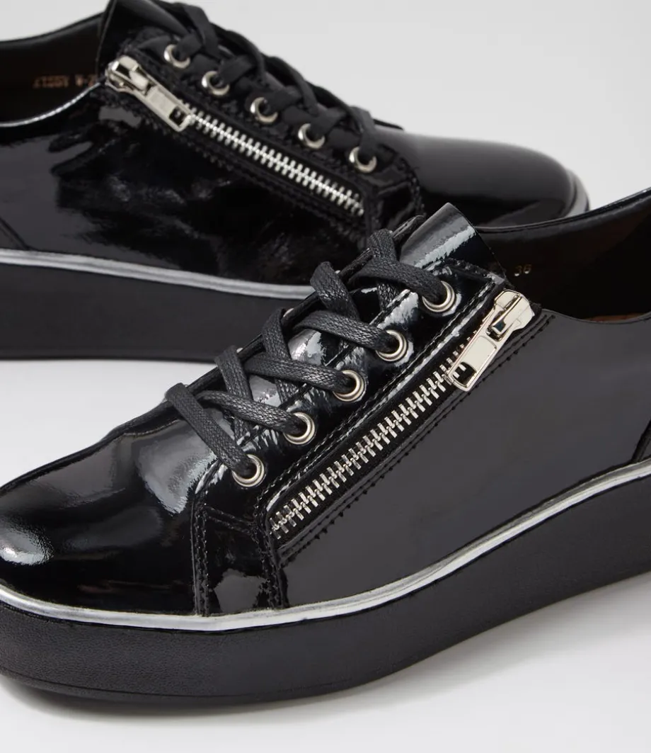 Zissy W Black Wrinkle Patent Sneakers<ZIERA Cheap