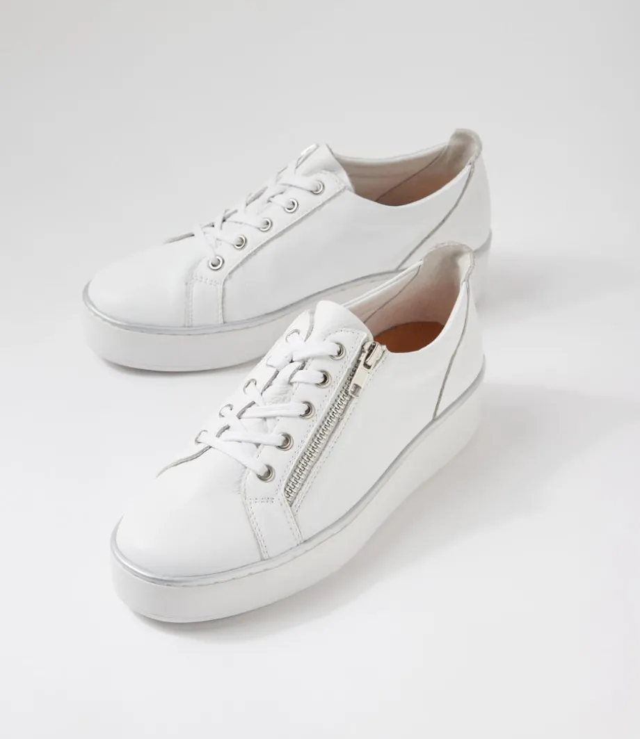 Enjoy Easy Styling These Classic Leather Sneakers From Ziera. Zissy Is An Orthotic-Friendly Design With A Removable Cushioned Footbed That Allows You To Personalise The Fit.