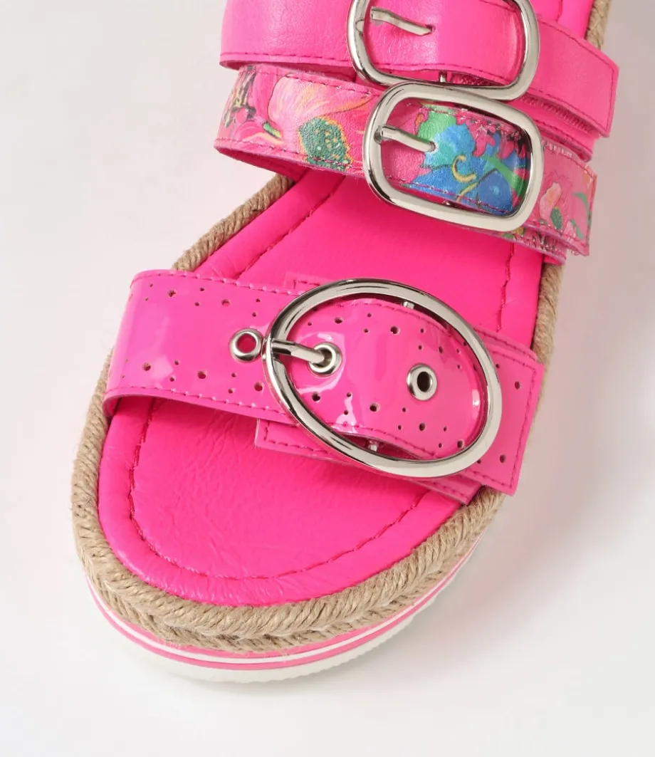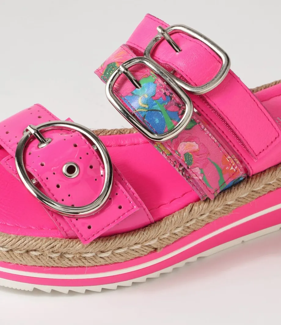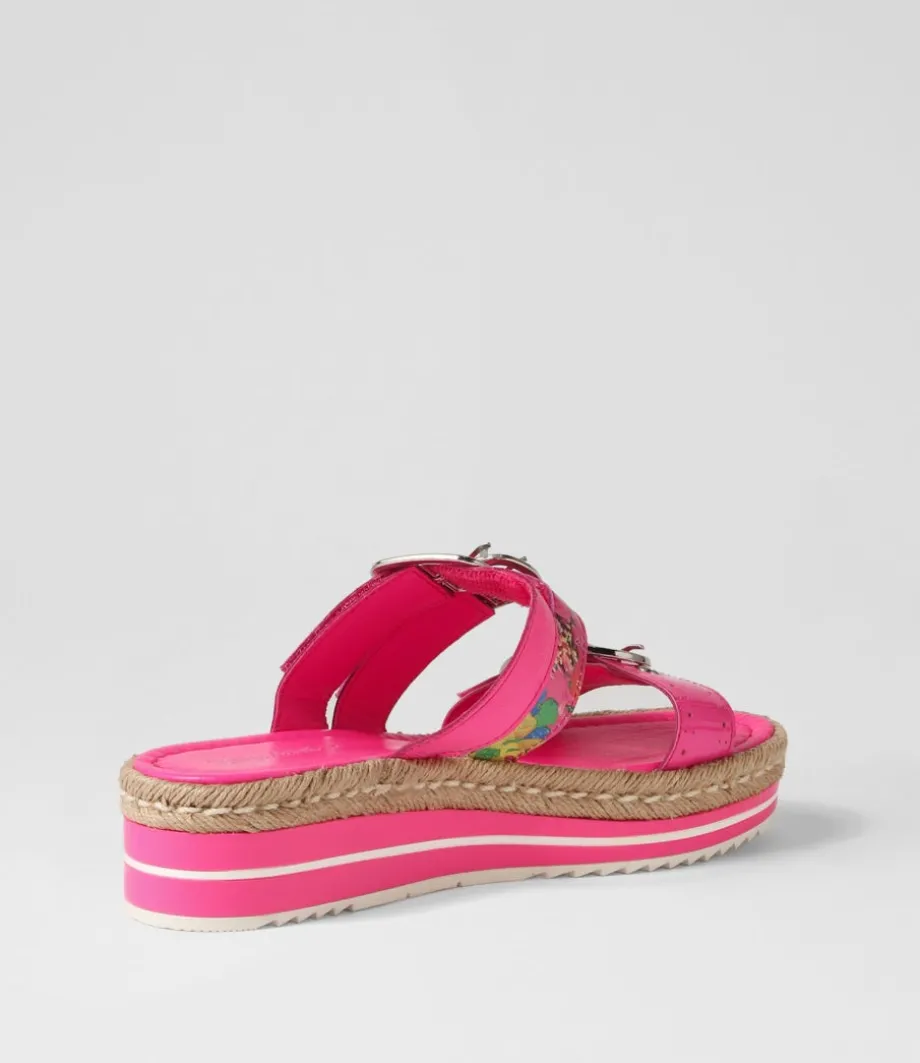 Abbas Hot Pink Patent Multi Slides<DJANGO & JULIETTE Fashion