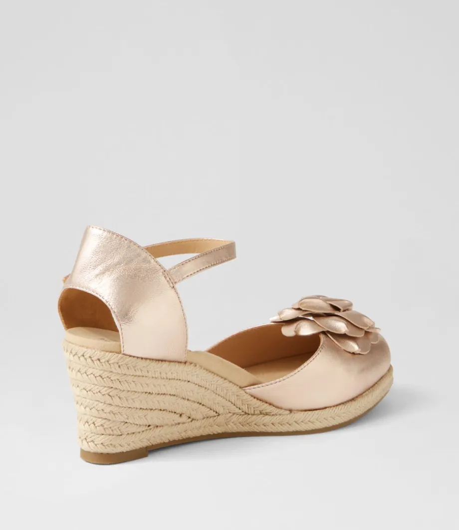 Adira W Pale Rose Gold Leather Wedges<ZIERA Fashion