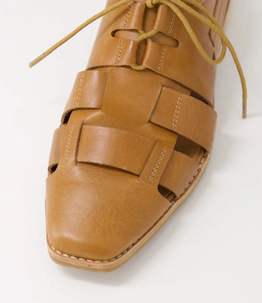 Alisane Tan Leather Lace Up Flats<DJANGO & JULIETTE Cheap