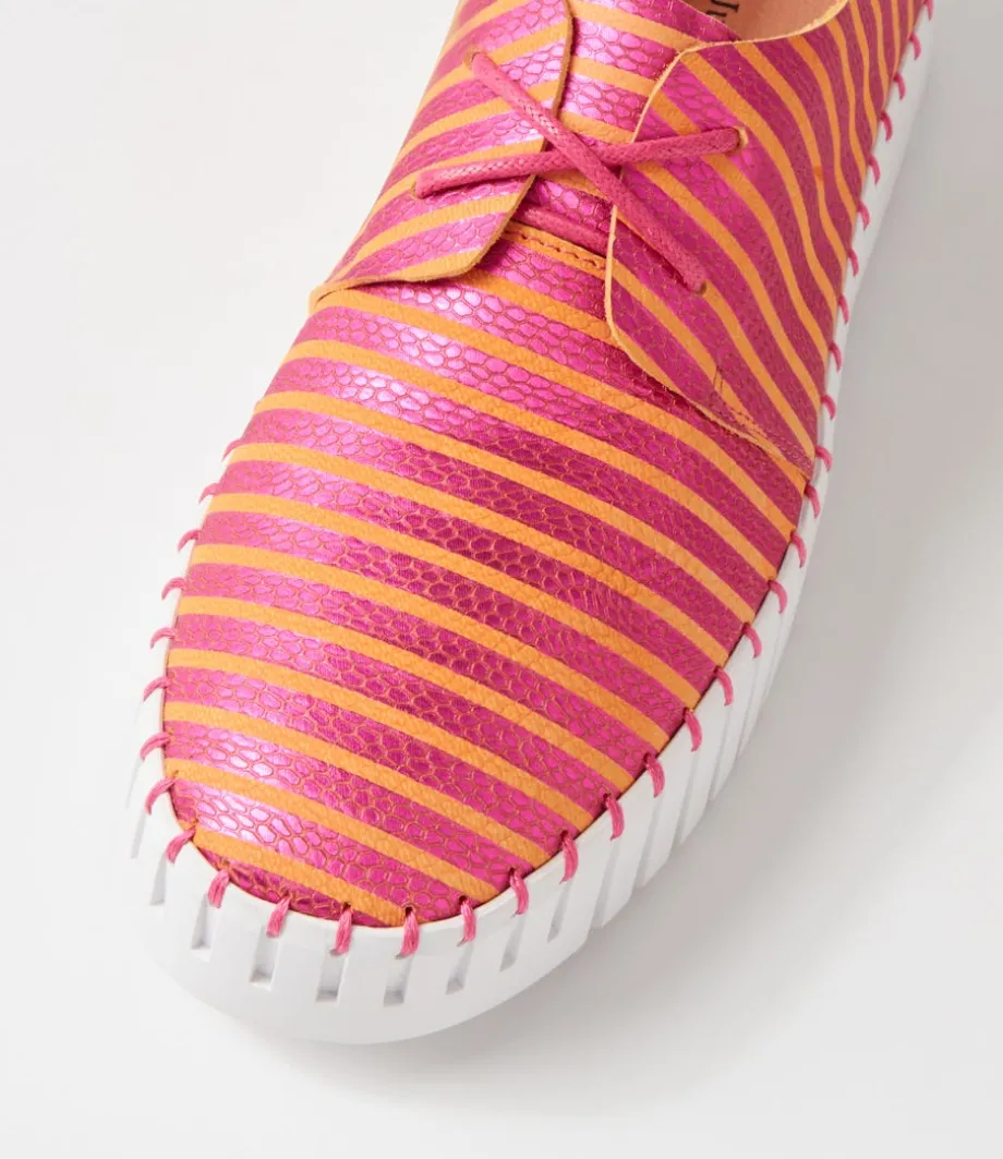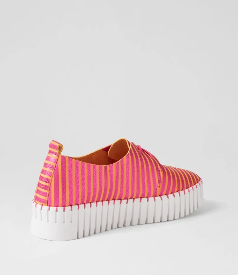 Brenda Fuchsia Orange Stripe Leather Sneakers<DJANGO & JULIETTE New
