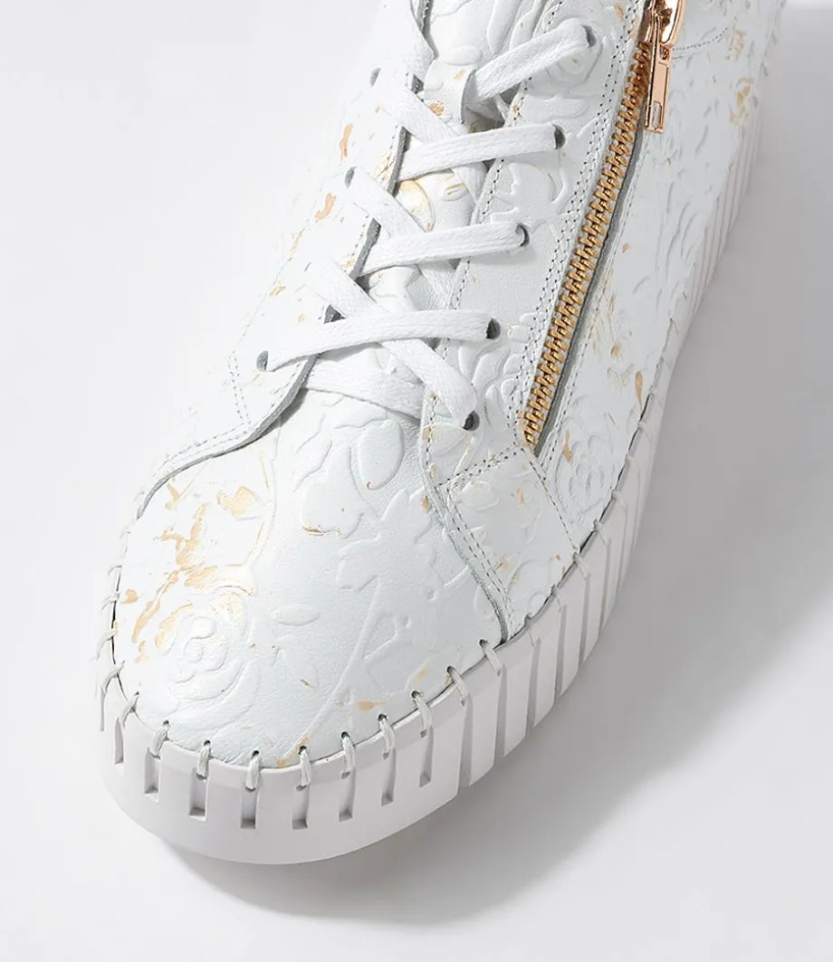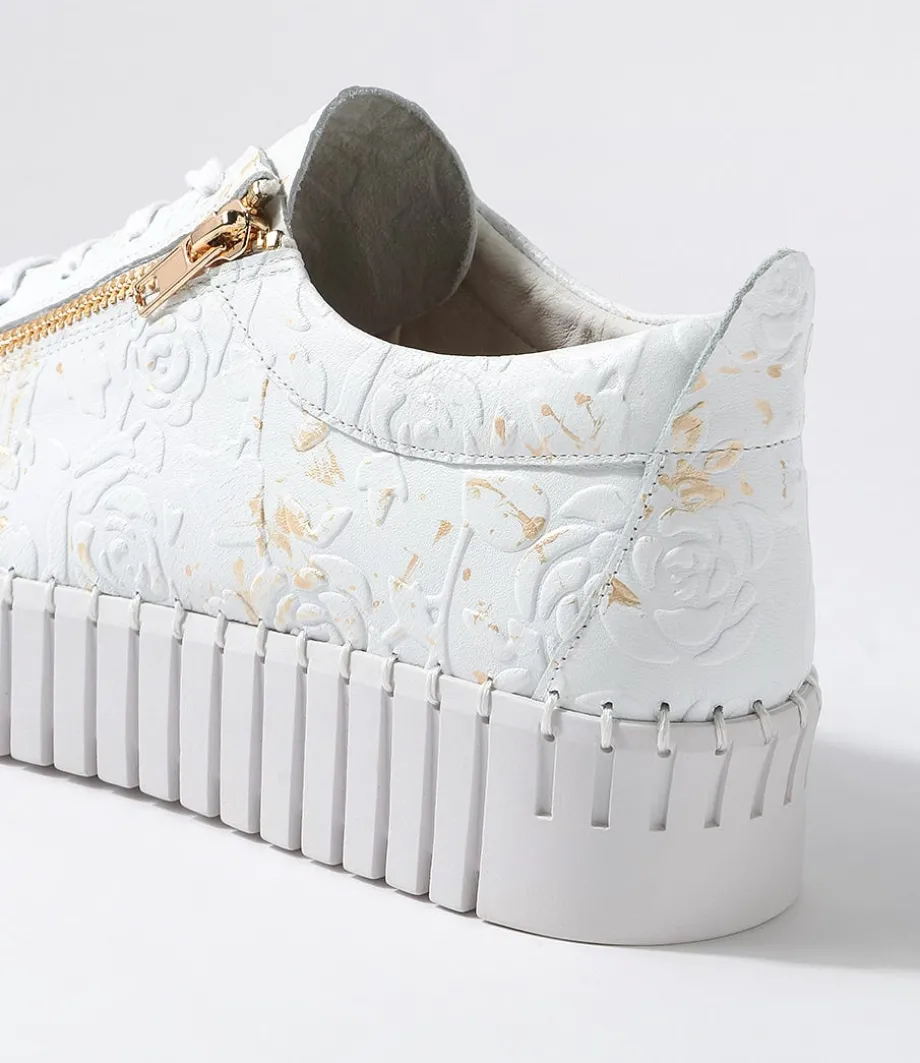 Bump White Gold Flower Leather Sneakers<DJANGO & JULIETTE Cheap