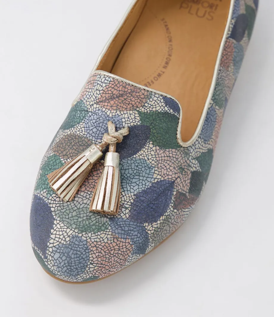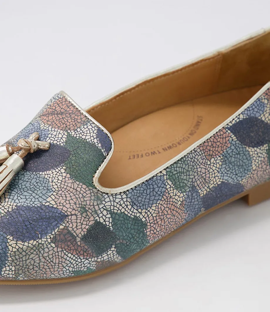 Charter Xf Blue Leaf Gold Multi Flat Shoes<ZIERA Fashion