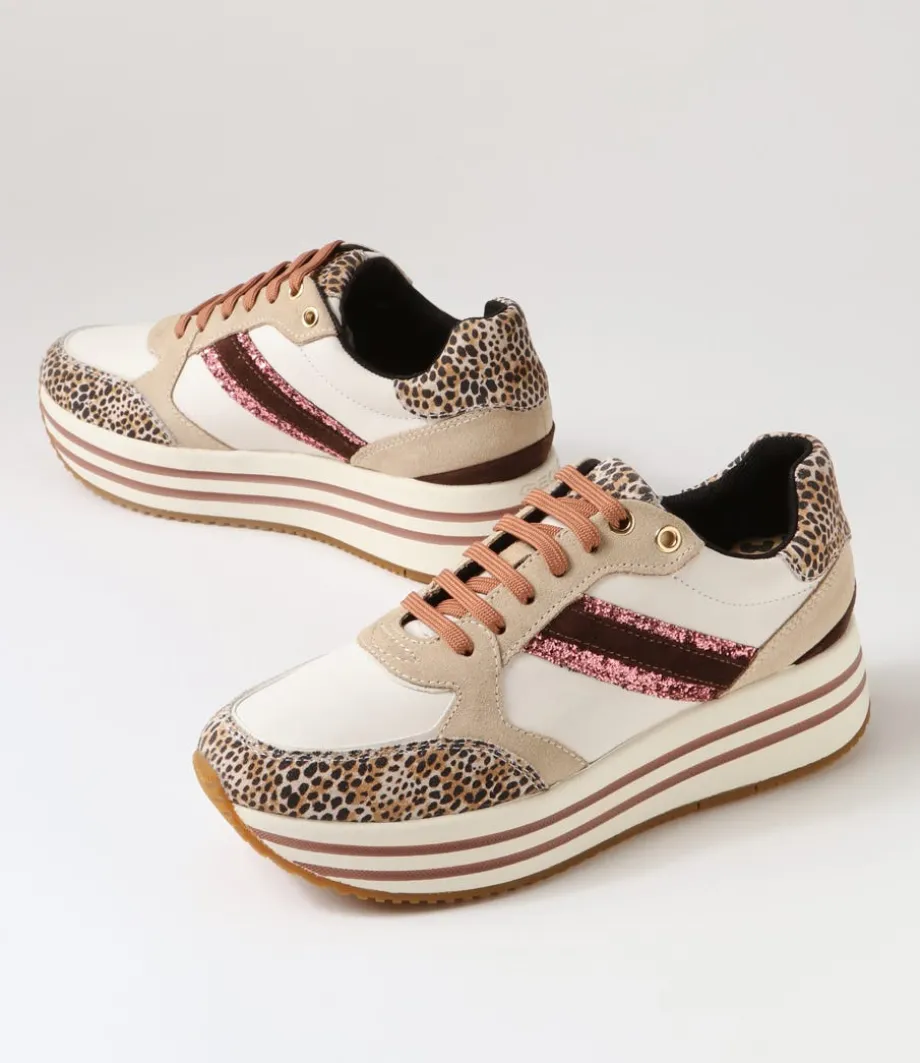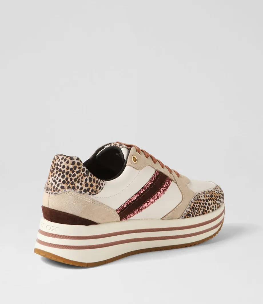 D Kency Off White Light Taupe Leather Suede Sneakers<GEOX Outlet