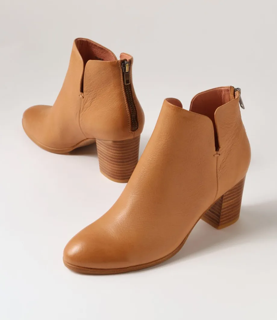 Duriel Dark Tan Natural Heel Leather Ankle Boots<DJANGO & JULIETTE Clearance