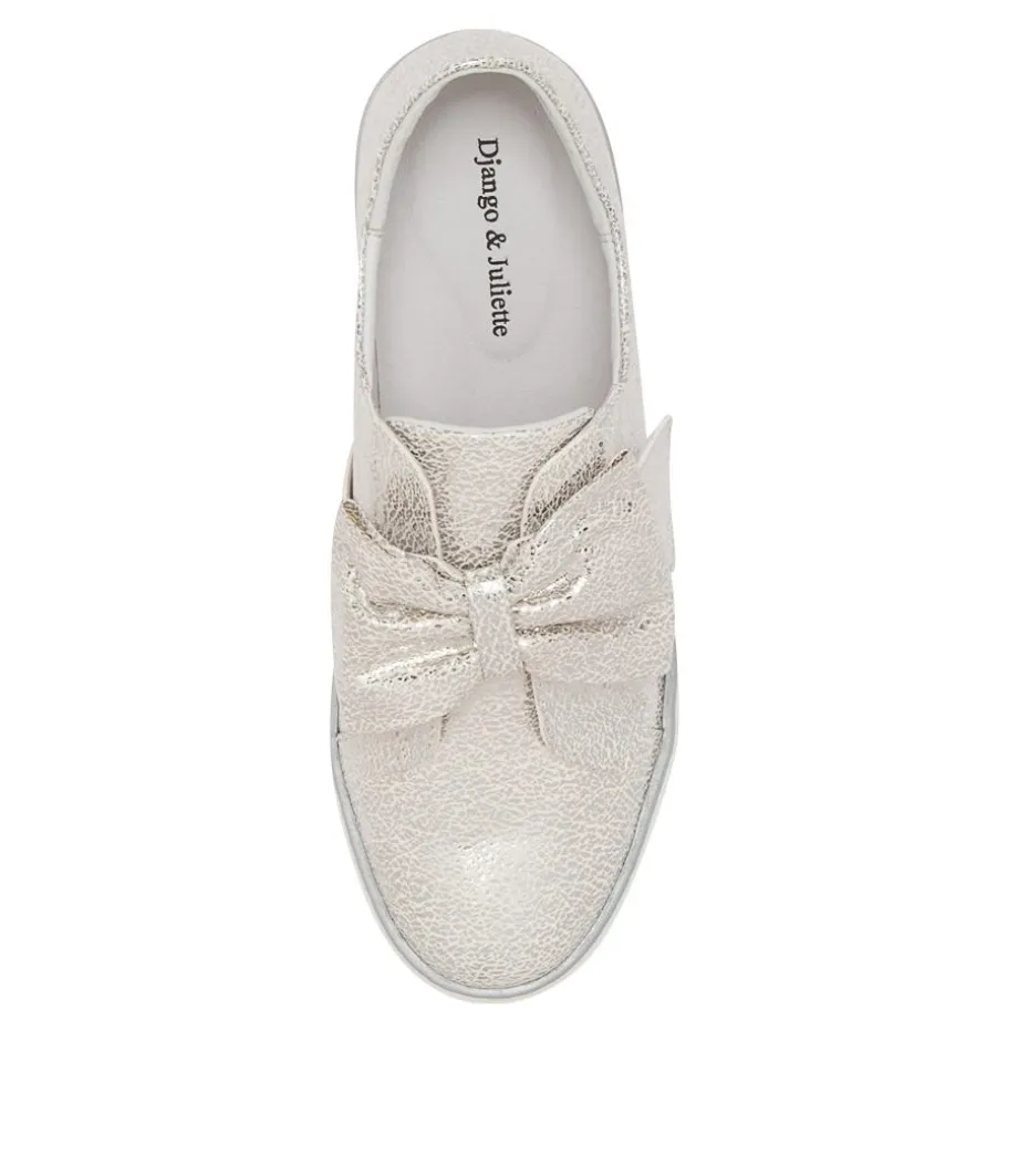 Leather Slip-On Sneakers That Exude Sweet Feminine Style, Folko By Django & Juliette Feature A Large Bow Detail On The Upper With A Flexible Sneaker Sole.