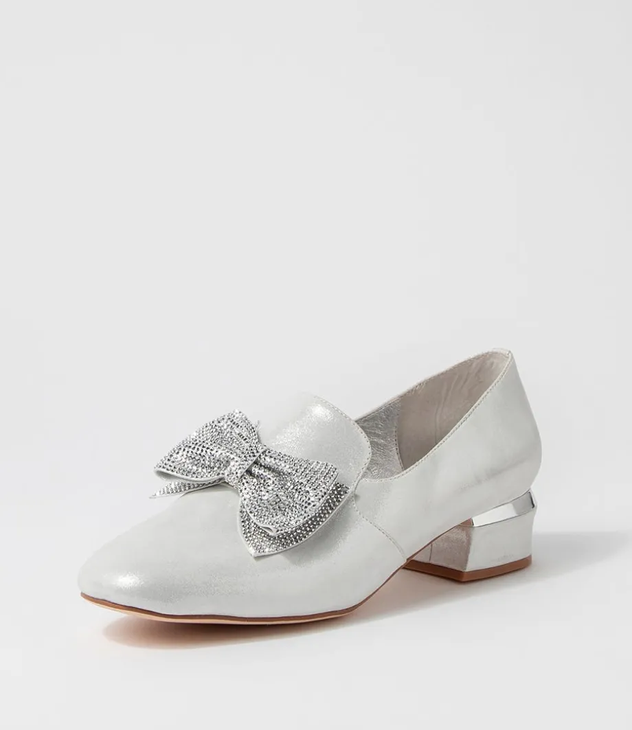 Grenada Silver Shimmer Leather Jewels Heels<DJANGO & JULIETTE Hot
