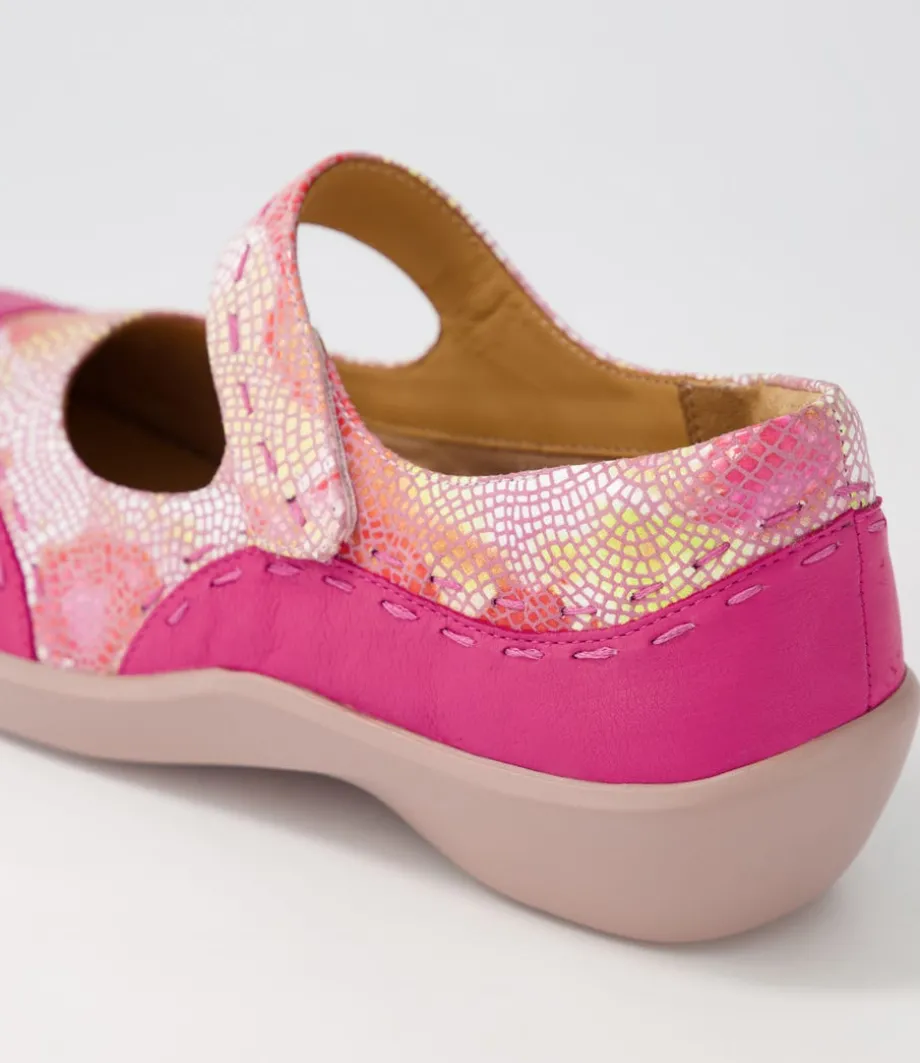 Gummibear W Fuchsia Pinwheel Leather Flat Shoes<ZIERA Cheap