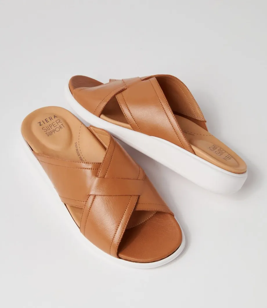 Iyolo W Dark Tan Leather Slides<ZIERA Discount
