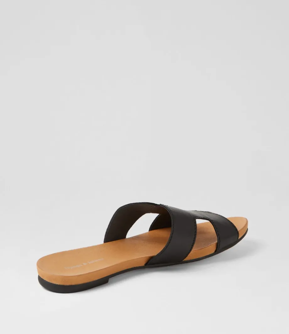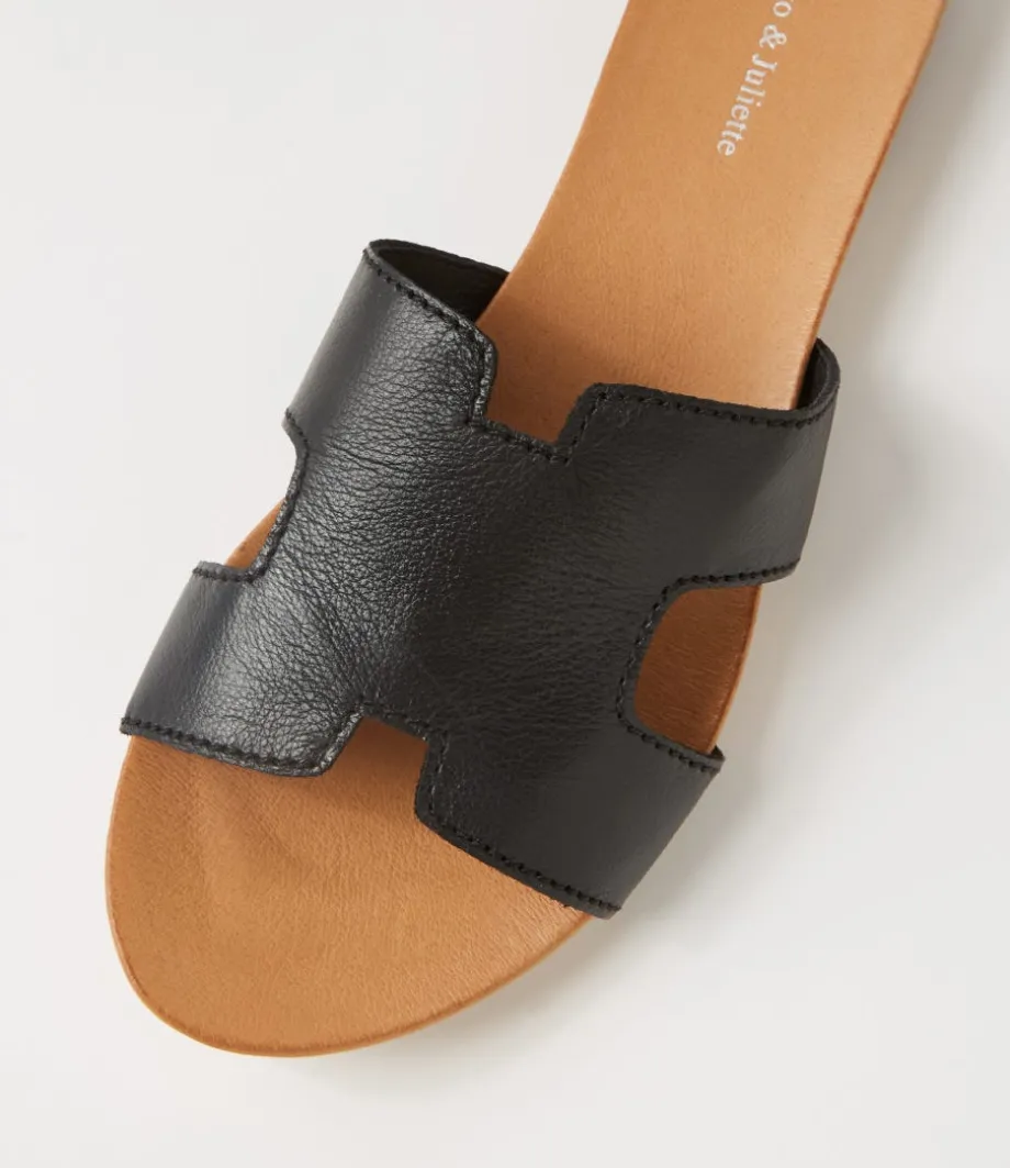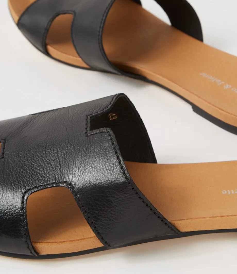 Jamel Black Leather Slides<DJANGO & JULIETTE Online