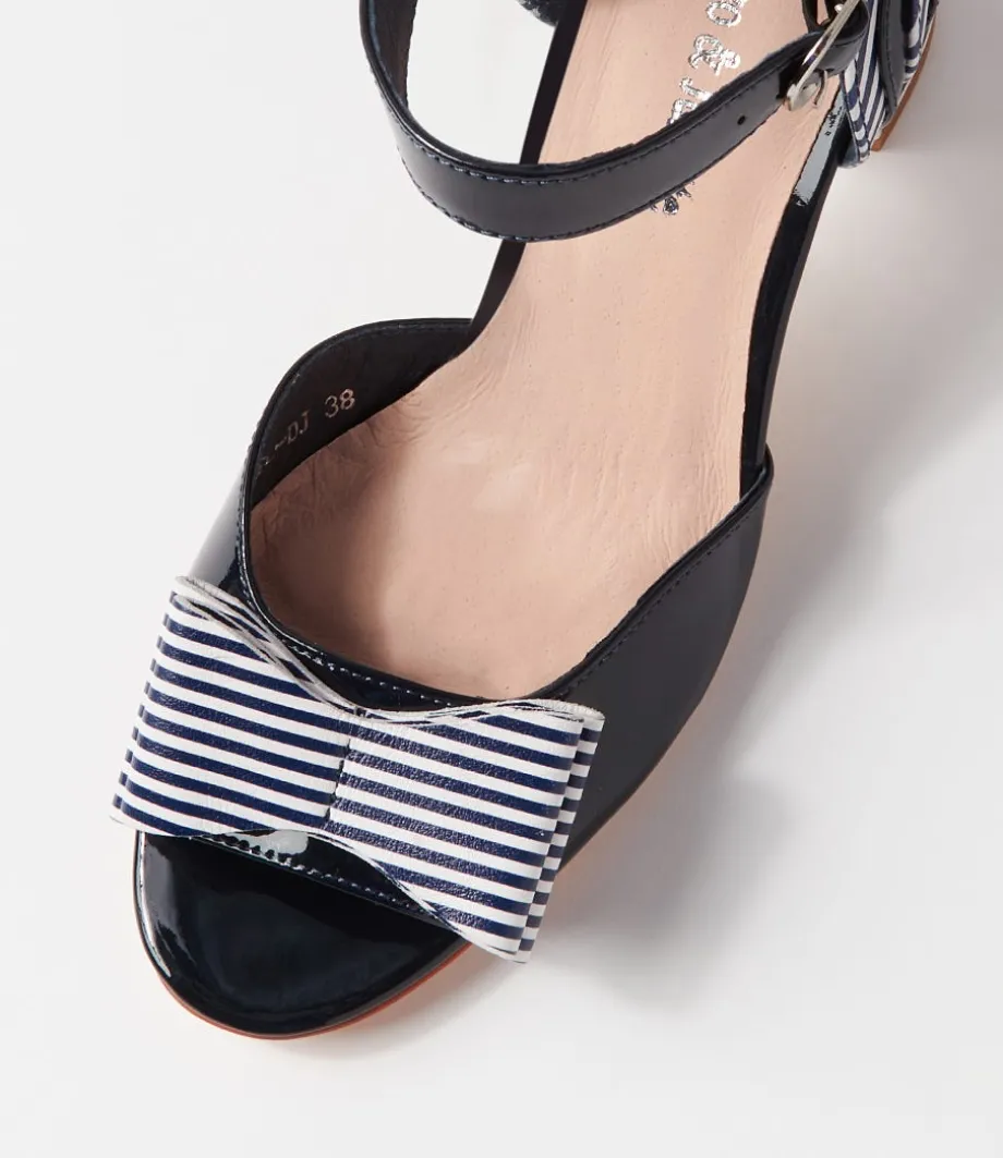 Kadmiel Navy Stripe Patent Leather Sandals<DJANGO & JULIETTE Fashion