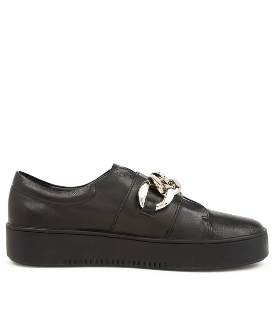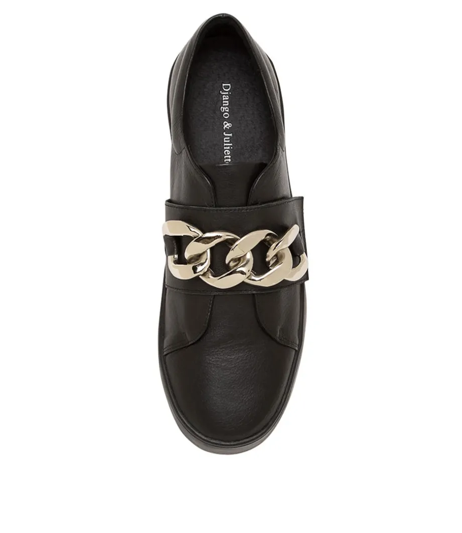 Get Laidback Slip-On Style With Layan By Django & Juliette. These Leather Sneakers Have A Riptape Strap Boldly Embellished With A Chain For Easy-To-Wear Glam Every Day Of The Week.