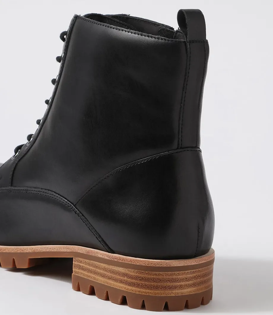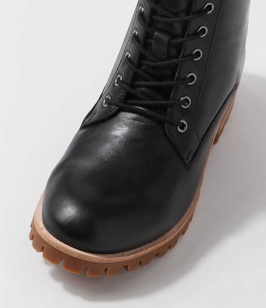 Minoru W Black Leather Lace Up Boots<ZIERA Cheap