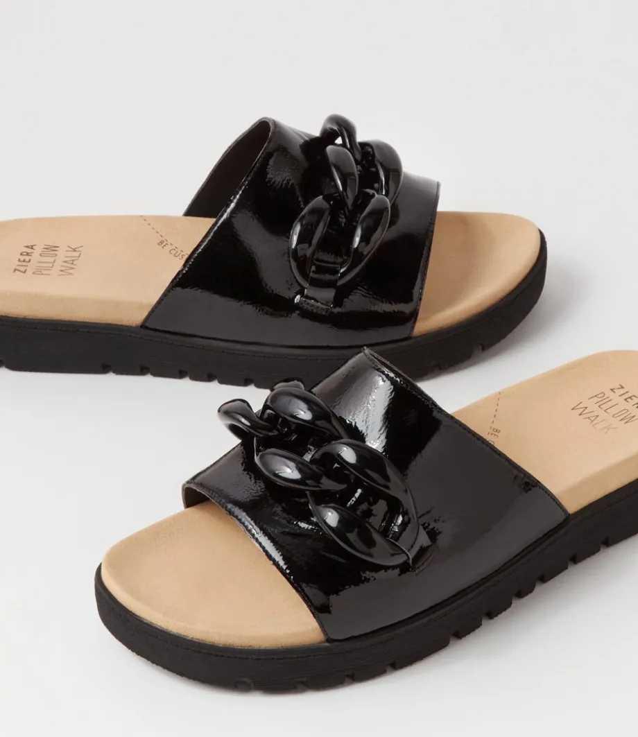 Nerriya Xw Black Patent Leather Slides<ZIERA Best