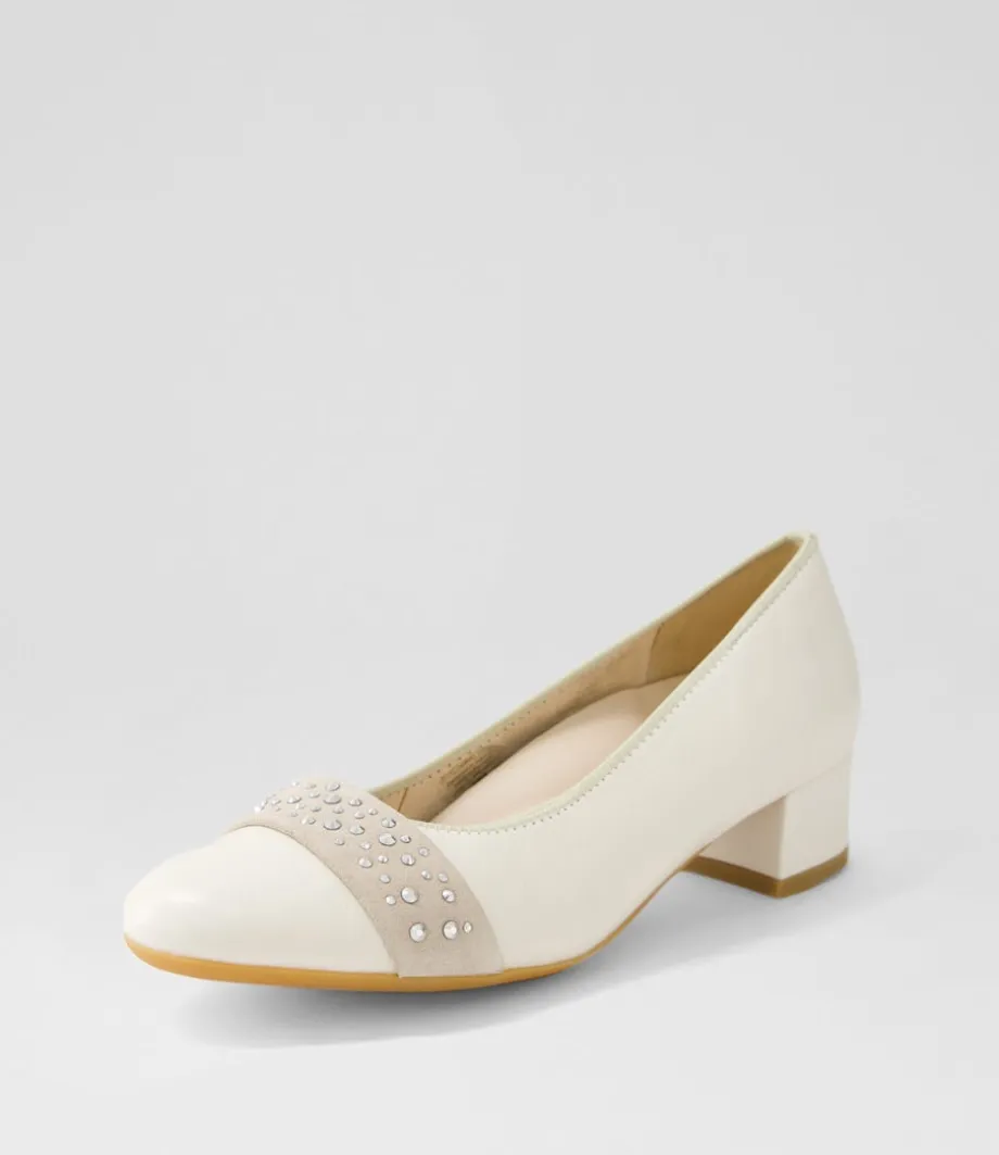 Nizza 13 Creme Shell Platinum Leather Heels<ARA Store