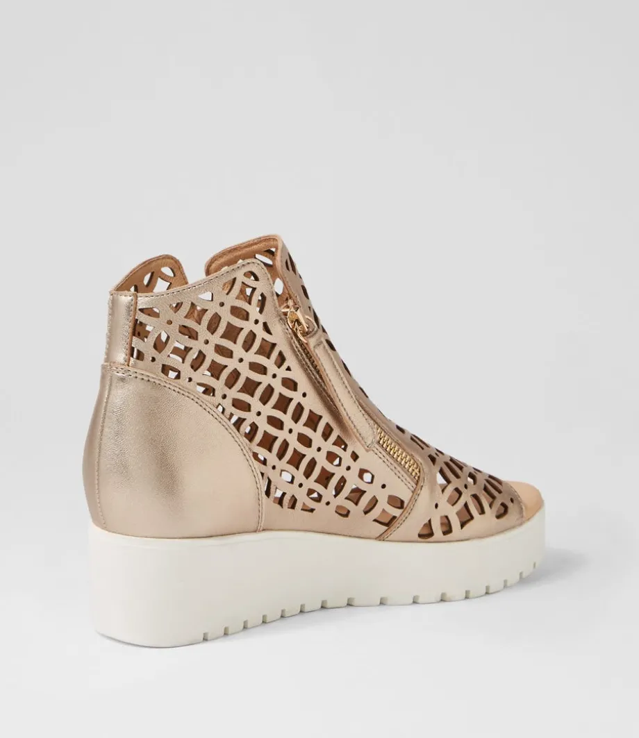 These Lace-Up Wedges Are A Modern Wardrobe Must-Have. A Cut-Out Bootie Silhouette Gives Olizzi By Django & Juliette A Chic Contemporary Vibe For Day Or Night Wear.