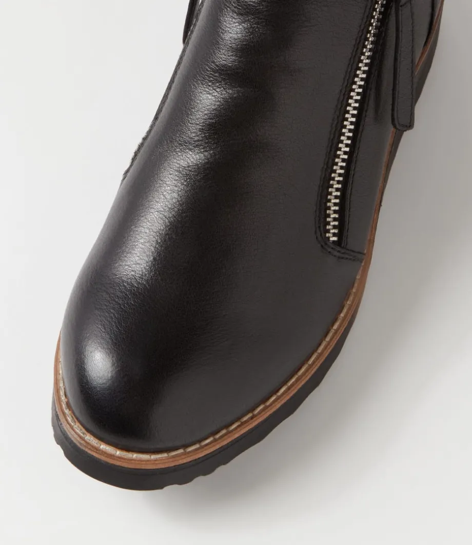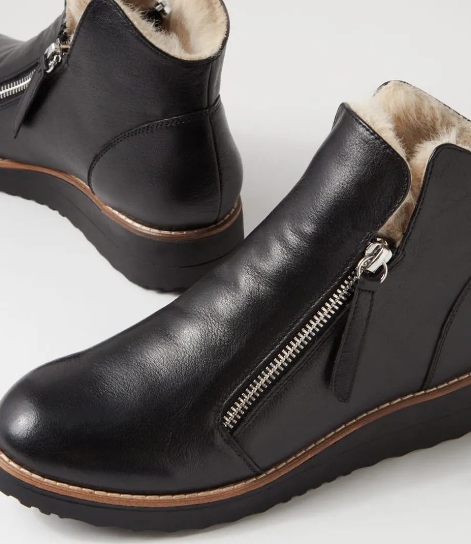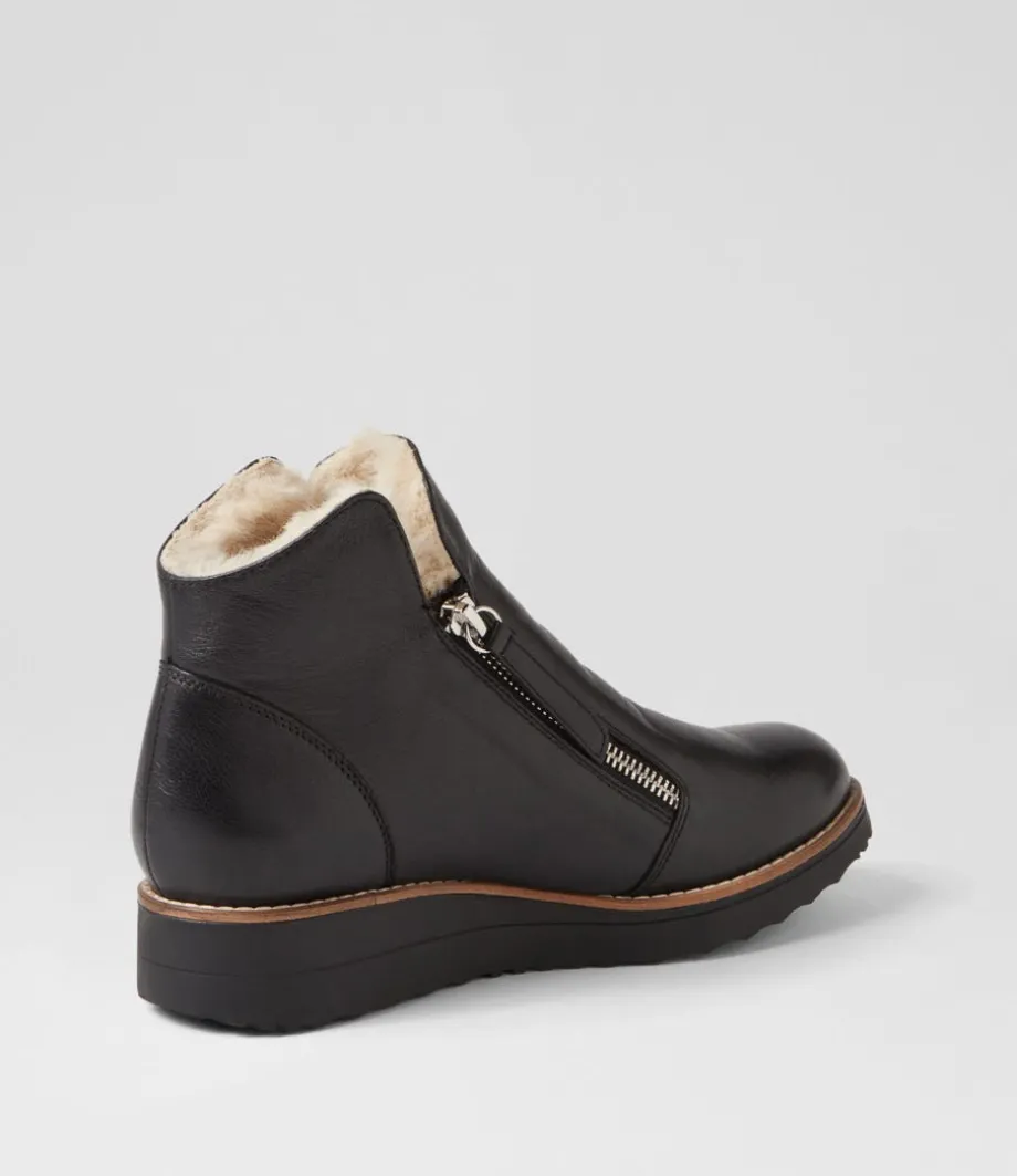 Opal Black Beige Leather Fur Ankle Boots<TOP END Clearance