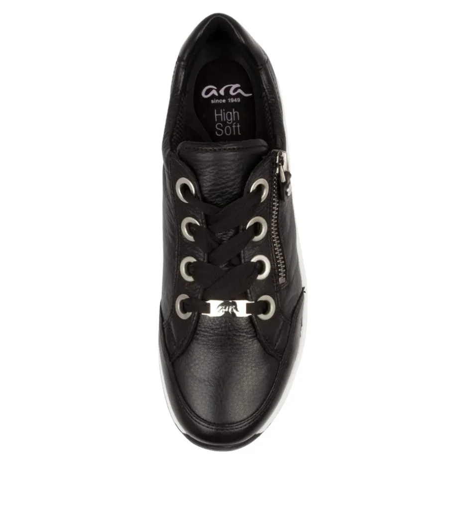 Fitted With A Supremely Comfortable High Soft Insole Which Adds Supportive Cushioning Under The Heel And Arch Where You Need It Most, The Osaka 87 Sneaker By German Brand Ara Is Designed For Elegance And Comfort, With A Combined Zip And Lace-Up Fastening. The Soft Leather Upper Features Tasteful Metallic Accents, Making This Style Equally Wearable To Brunch Or A Soccer Game.