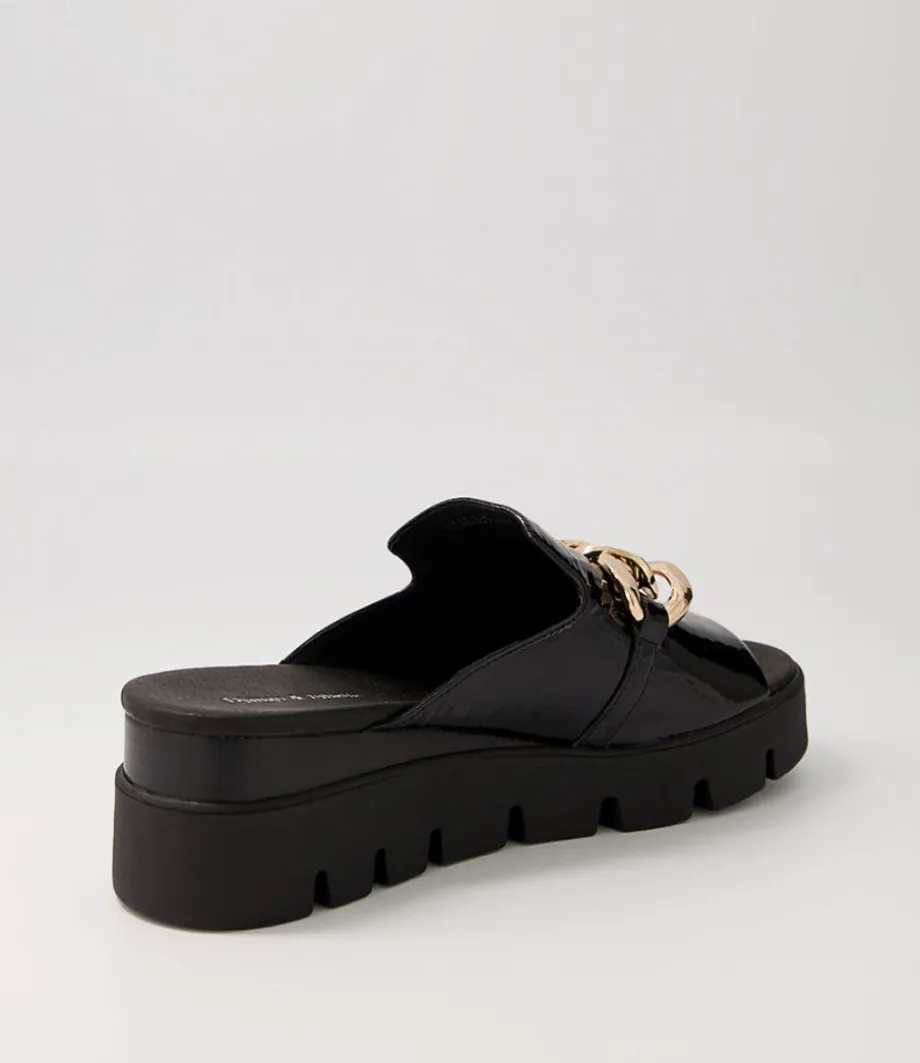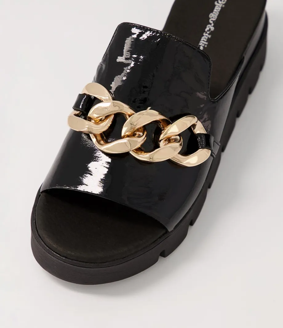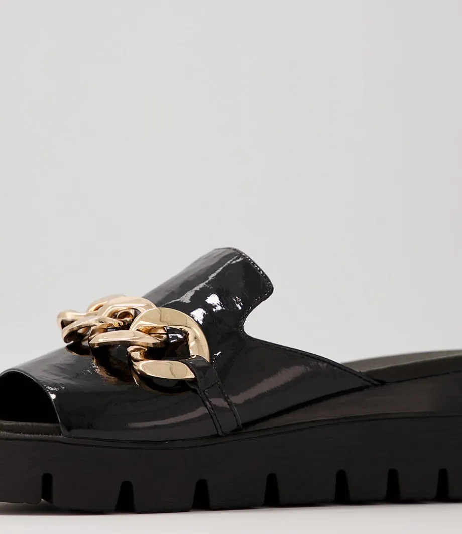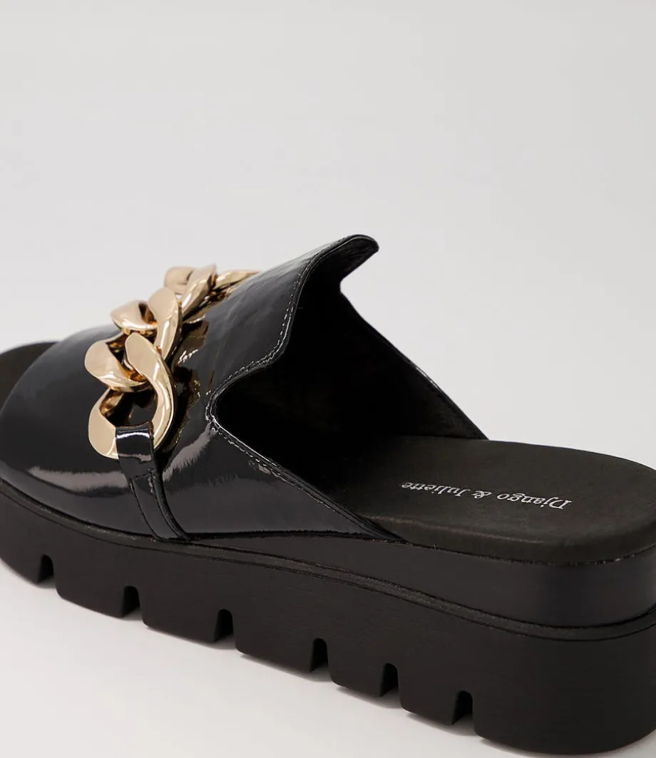 Rablise Black Patent Sole Slides<DJANGO & JULIETTE Store