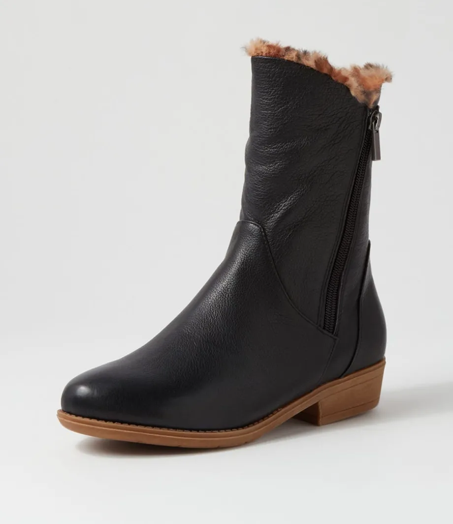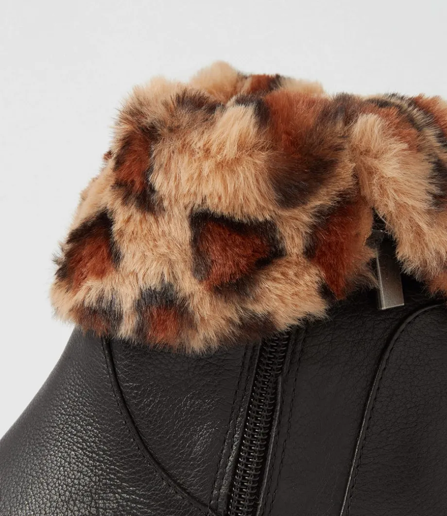 Rudo Black Leopard Fur Tumble Nubuck Calf Boots<DJANGO & JULIETTE Cheap
