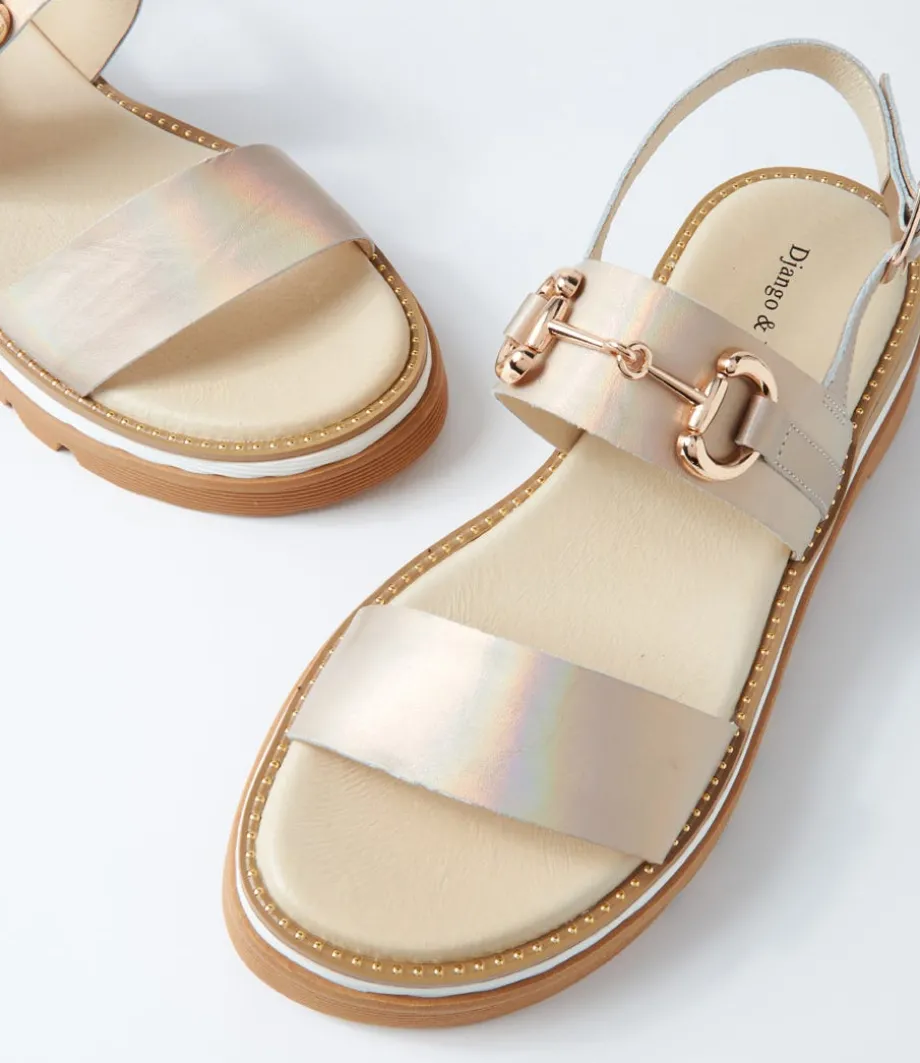 Sabri Gold Petrol Shrunken Leather Sandals<DJANGO & JULIETTE Clearance