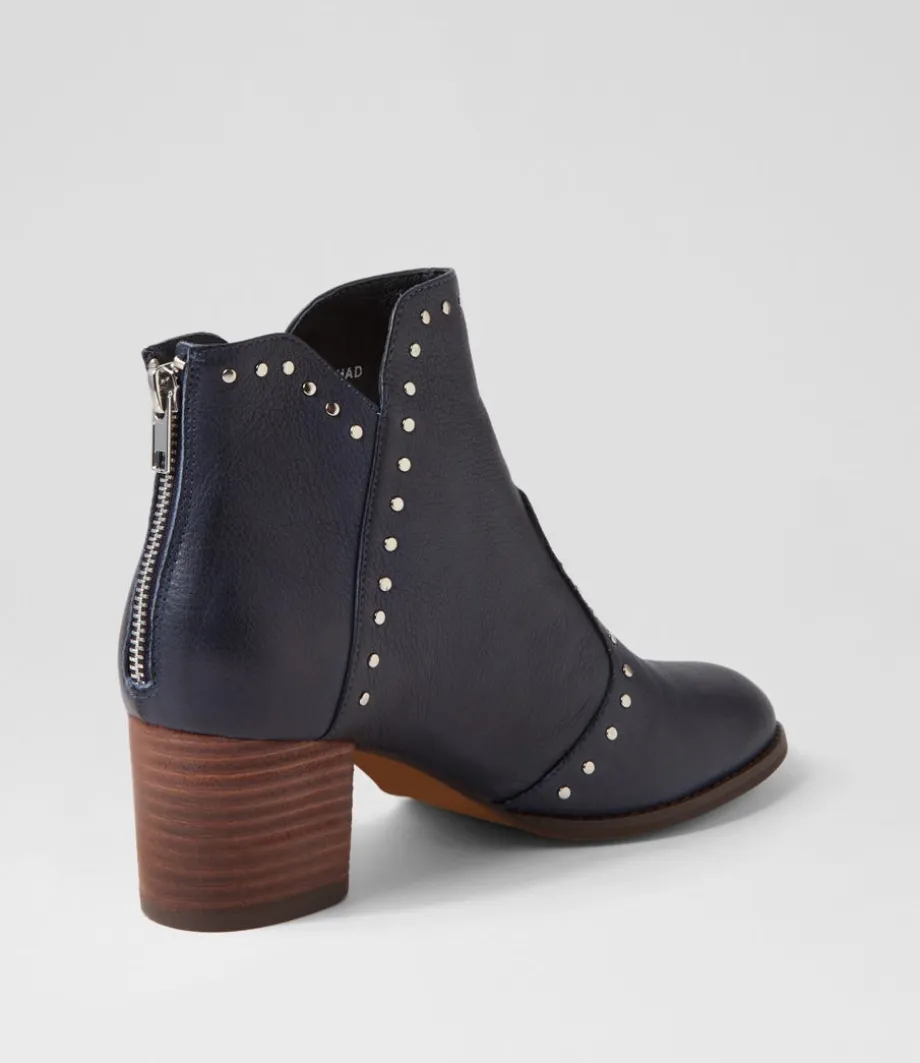 Shad Navy Choc Leather Ankle Boots<DJANGO & JULIETTE Shop